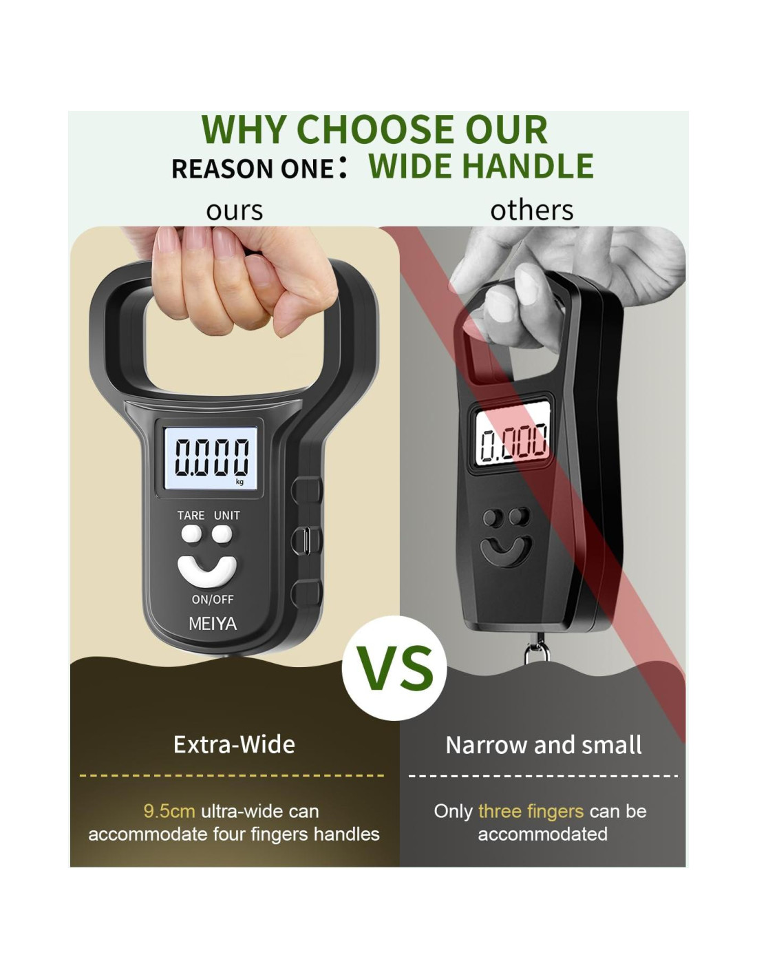 - Mango Grande y Cómodo para Levantar Fácilmente: Equipado con un mango ancho y ergonómico, esta balanza de pescado ofrece un mejor agarre en comparación con mangos más pequeños, facilitando levantar y pesar capturas pesadas. Ya sea que estés pescando o usándola para otras tareas, este diseño considerado reduce la tensión en las manos y mejora tu experiencia de pesaje en general.