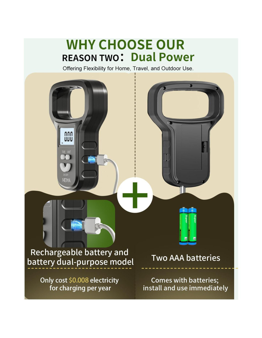 - Doble Alimentación para Mayor Comodidad: Con dos opciones de alimentación - recargable a través de USB-C o baterías AAA - esta balanza de equipaje digital de viaje te brinda flexibilidad en movimiento. No necesitas preocuparte por quedarte sin energía durante tus viajes de pesca o viajes; simplemente elige la fuente de energía que te convenga. Además, su diseño portátil asegura que puedas llevarla a cualquier lugar, convirtiéndola en una herramienta esencial para aventureros y viajeros.