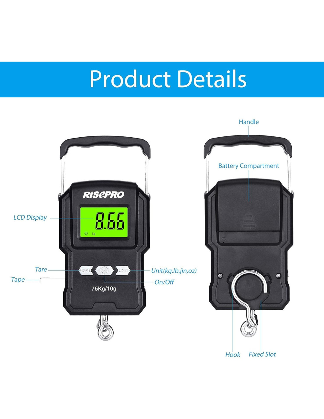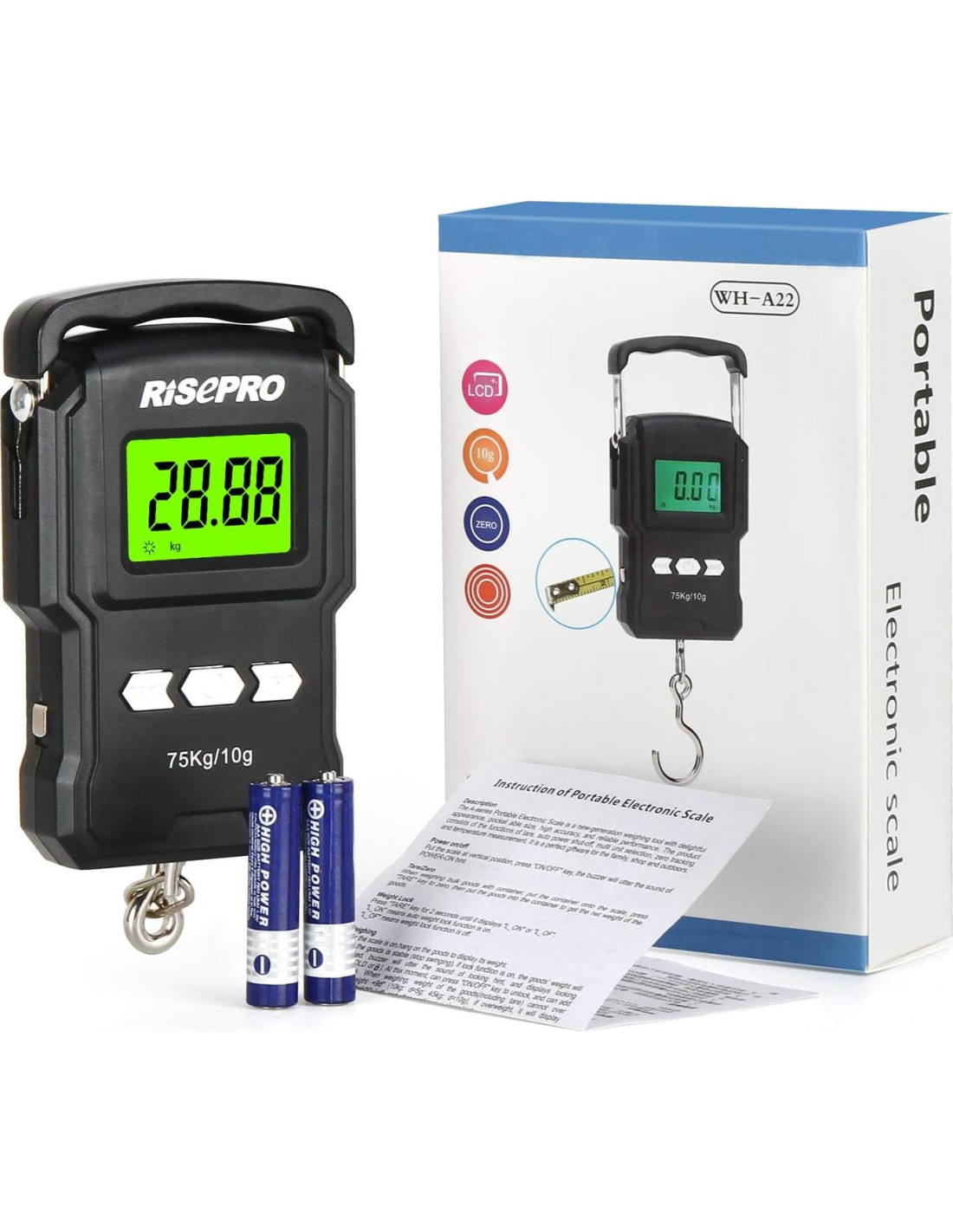 Esta balanza colgante de bolsillo RISEPRO es ideal para pescar, cazar, equipaje, envíos postales, uso en el hogar, etc.