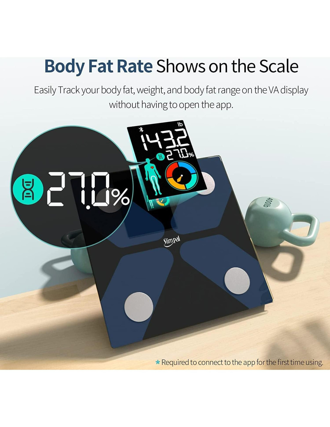 - Visualización Directa de Grasa Corporal: Vea su porcentaje de grasa corporal y rango directamente en la pantalla VA de la balanza, sin necesidad de revisar su teléfono.