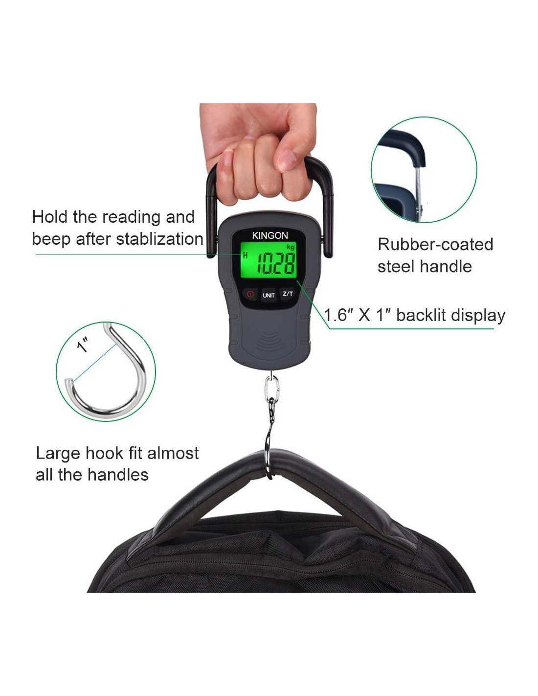 - FÁCIL DE USAR - Esta báscula electrónica tiene un mango recubierto de goma de 3.5" para un agarre cómodo; Pantalla LCD retroiluminada más grande; La función de sujeción te permite leer después de dejar tu bolsa pesada; El gancho de nuestra báscula de equipaje colgante es lo suficientemente grande para casi todos los mangos.