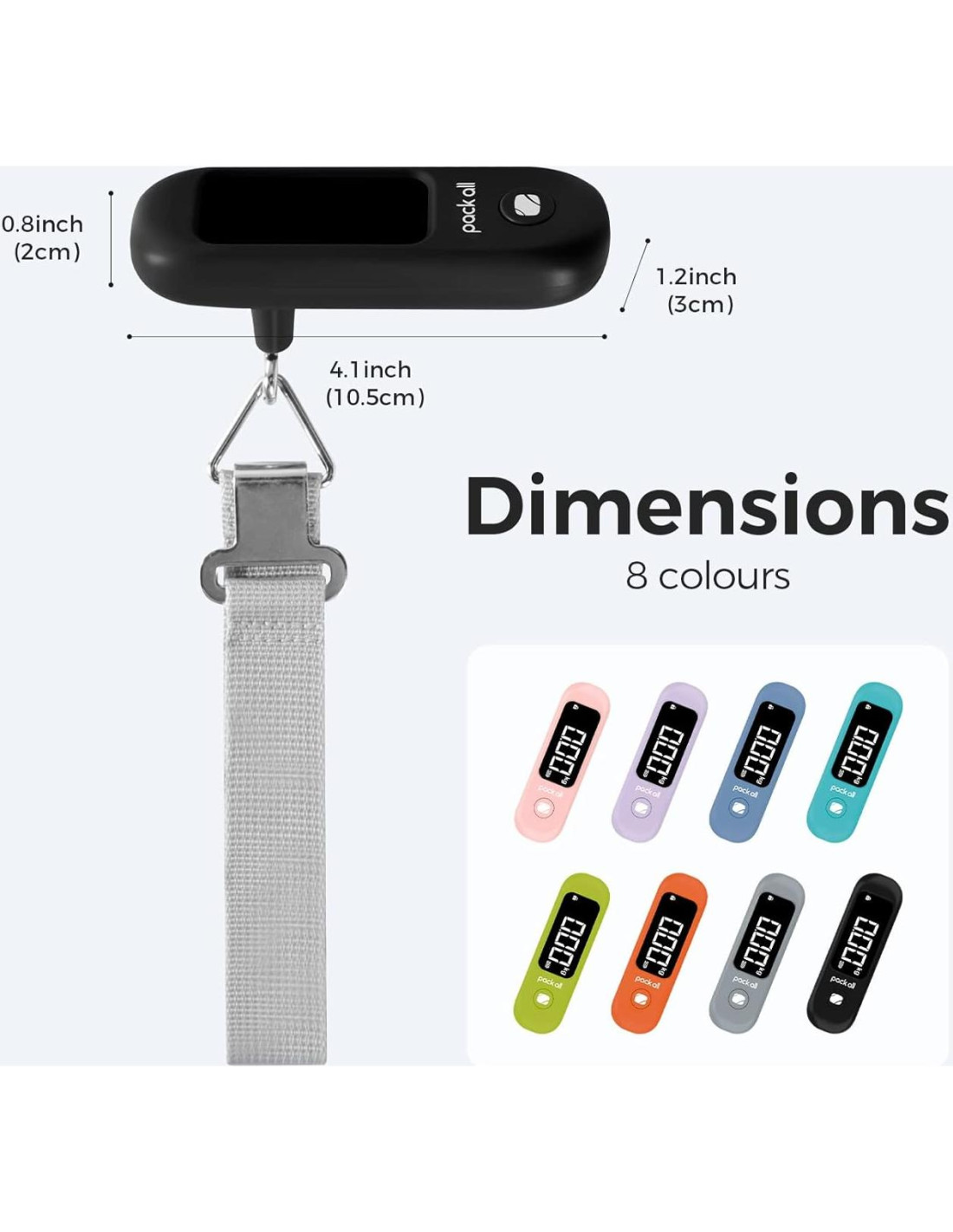 - COMPACTA - Capacidad de 50 kg, 0.1 lb/50 g de precisión, lb/kg/oz intercambiable. La balanza de equipaje digital es compacta y un amigo ideal en cada aventura.