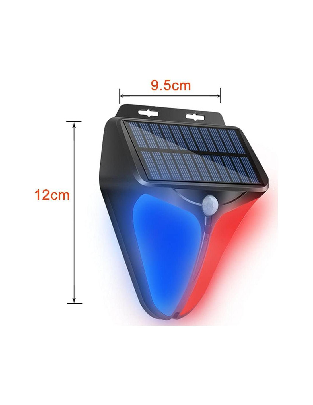 - [Sonido de Alarma de 90dB]: La luz de advertencia emite un sonido máximo de 90dB. Tiene un rango de detección de movimiento de 3-5 metros y un ángulo de detección de aproximadamente 120 grados. Proporcionando efectivamente protección de seguridad para áreas como hogares, granjas y almacenes, la luz de alarma solar parpadea y emite un sonido de alarma cuando una persona o animal entra en su rango de sensor, despídete del visitante no deseado.