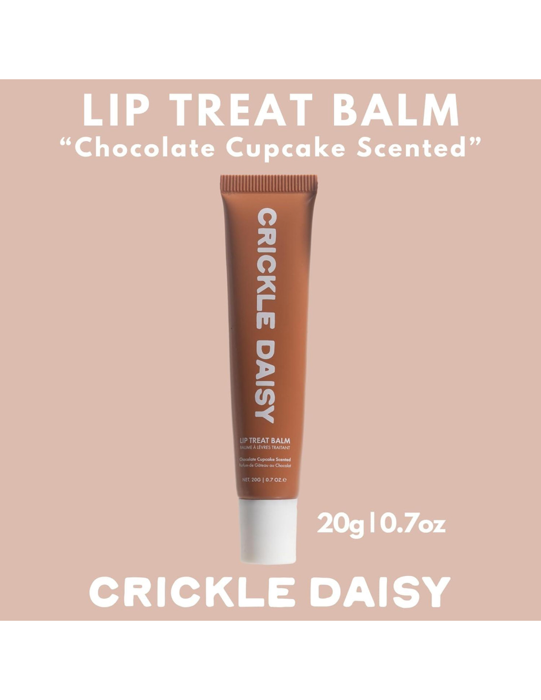 Mima tus labios con el Bálsamo de Labios de Pastel de Chocolate de Crickle Daisy. Este delicioso bálsamo de labios de pastel de chocolate está infusionado con ingredientes nutritivos como aceite de aguacate, aceite de oliva y aceite de coco para proporcionar una hidratación profunda y protección. La rica fórmula no pegajosa mantiene tus labios suaves, lisos y libres de grietas. Con su dulce aroma a pastel de chocolate, es perfecto para el uso diario, ya sea solo o sobre tu producto labial favorito. Hecho en EE. UU., este bálsamo asegura que tus labios se mantengan bellamente hidratados y deliciosamente perfumados. Regala a tus labios el dulce cuidado que merecen con el Bálsamo de Labios de Pastel de Chocolate de Crickle Daisy.