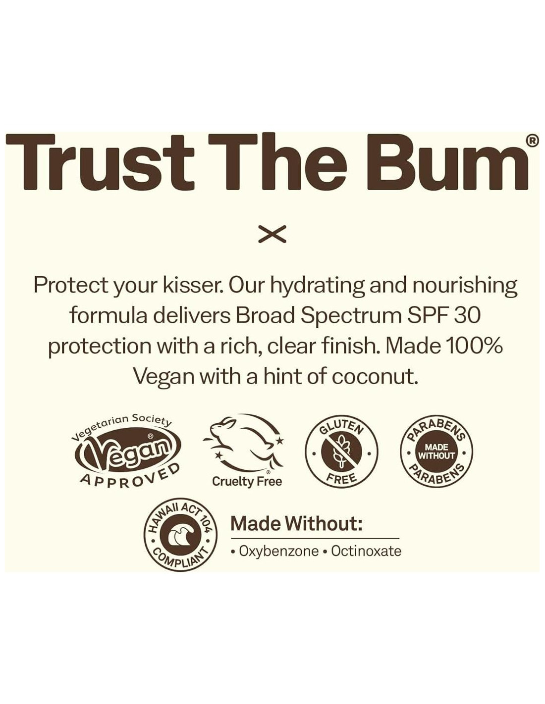 - BÁLSAMO LABIAL SPF 30 SUN BUM. Mantenemos uno de estos en cada bolsillo. Nuestro bálsamo labial favorito, que lo hace todo, se desliza suavemente para una rica protección hidratante. Protección hidratante de cobertura total SPF 30 en ese sabor a coco que amamos.