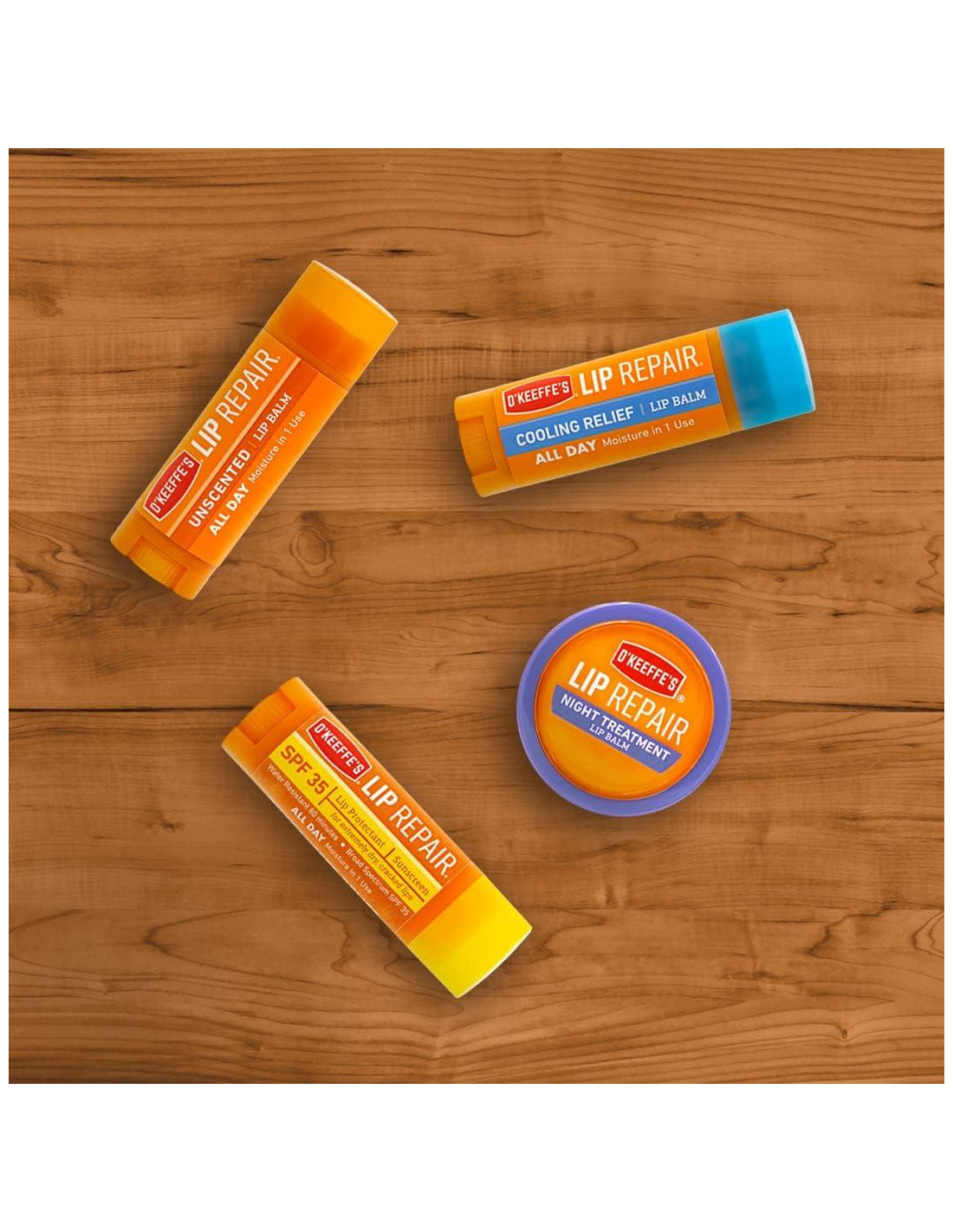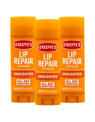 - Reparación de labios para labios secos y agrietados: El Bálsamo Labial Reparador de O'Keeffe's es un bálsamo labial que sana, alivia y repara los labios extremadamente secos con una mezcla de siete ingredientes hidratantes