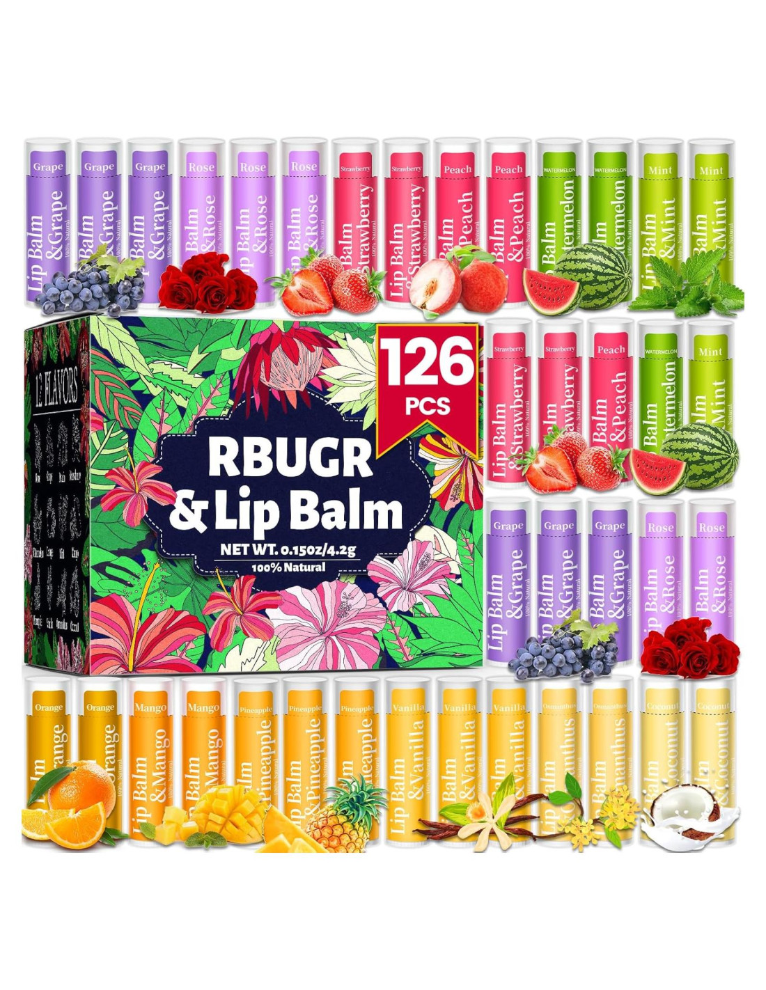 - 12 Sabores Naturales: Este set de bálsamo labial viene en 12 sabores: rosa; uva; durazno; fresa; sandía; naranja; menta; mango; piña; vainilla; osmanthus y coco. Cada sabor se extrae de frutas y plantas naturales para hidratar y reparar. 3 barras de cada sabor, 4.2g/0.15oz por bálsamo labial. Cada bálsamo labial está envuelto individualmente con un sello separado para limpieza e higiene.