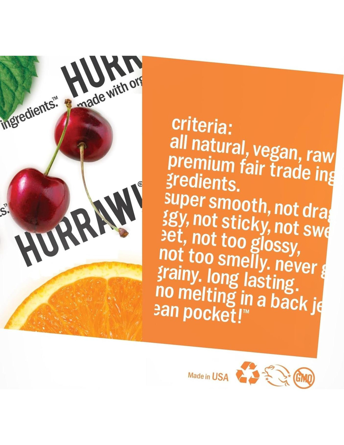 - CRITERIOS: Los Bálsamos Labiales Hurraw! son todos naturales, veganos, crudos, hechos con ingredientes de comercio justo de primera calidad, súper suaves, no arrastran, no son pegajosos, no son dulces, no son demasiado brillantes, no son demasiado olorosos. Nunca arenosos. Larga duración y sin derretirse en un bolsillo trasero de jeans. Hecho en Montana, EE. UU.