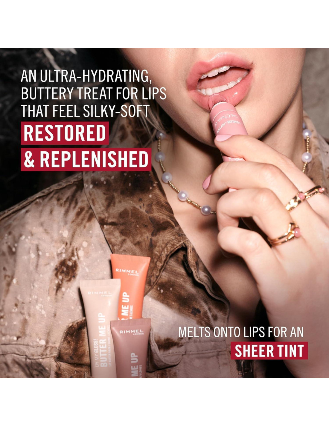 UN TRATAMIENTO ULTRA-HIDRATANTE Y MANTEQUILLO PARA LABIOS QUE SE SIENTEN SUAVES COMO SEDA, RESTAURADOS Y REABASTECIDOS. El bálsamo hidratante Rimmel Oh My Gloss Butter Me Up es nuestro producto de cuidado labial más avanzado con activos para el cuidado de la piel que incluyen 5% de Escualeno para labios nutridos y de apariencia más suave.