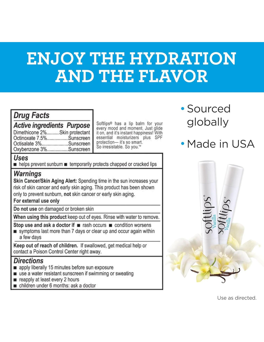 - SABOR A VAINILLA DELICIOSO: Disfruta del delicioso sabor del bálsamo labial hidratante Softlips sabor vainilla; una fórmula suave y deslizante llena de acondicionadores para la piel que nutren los labios