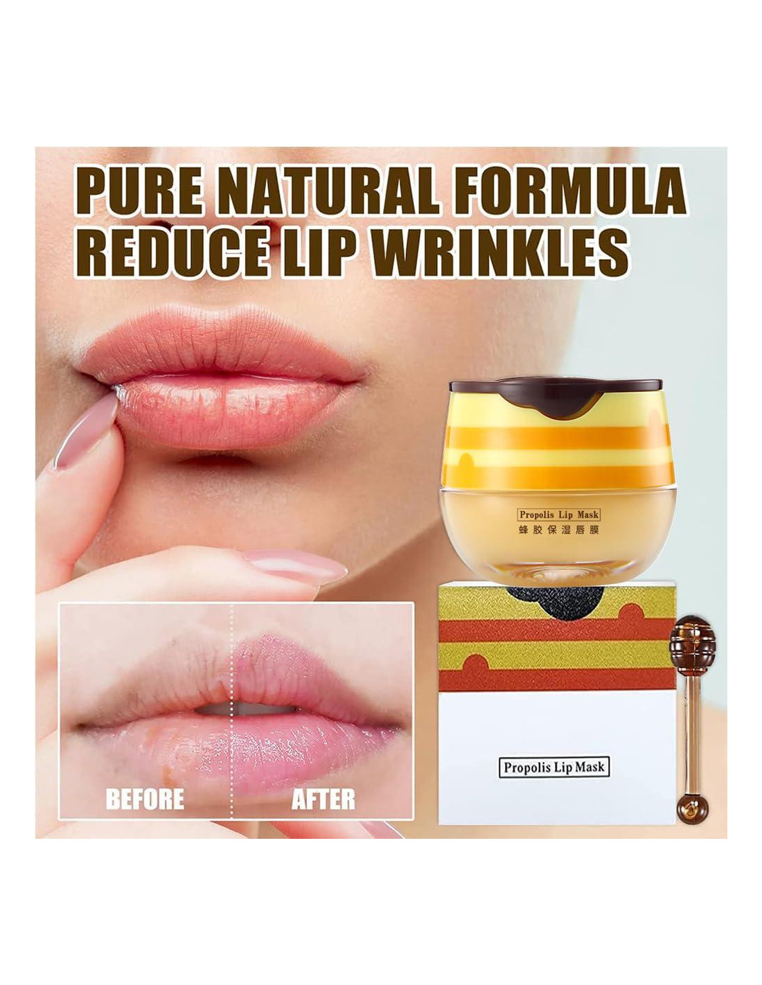 - [Diseño exquisito] Diseño delicado y pequeño de tarro de miel, para satisfacer el estado de ánimo de tu chica de fantasía. El diseño de empaque humanizado reserva espacio para el cepillo labial después de usar la máscara labial de propóleo. Oculto en la caja, fácil de almacenar, no fácil de perder. Es un regalo ideal para tus amigos o familiares en Navidad u otras festividades.
