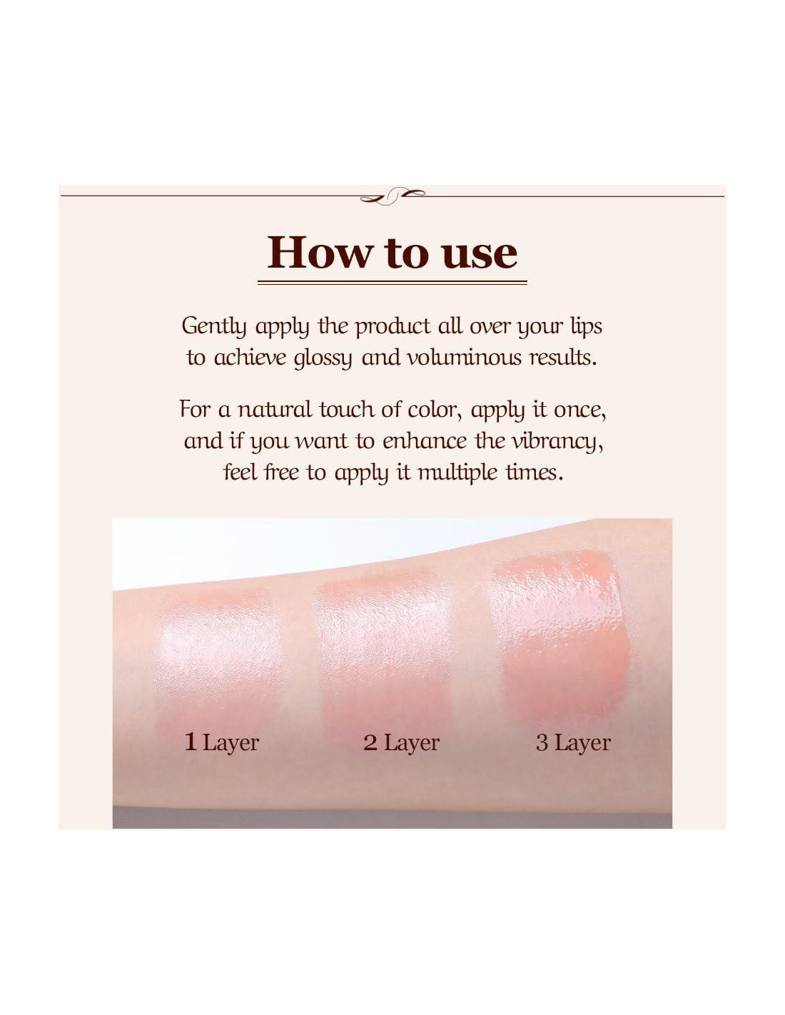 - [Efecto de Tinte Sutil] Observa cómo el color realza gradualmente tus labios con el tiempo, creando un tinte suavemente hermoso que complementa naturalmente tu tono de piel. Este tinte gradual funciona maravillosamente con todos los tonos de piel, dando a tus labios un color natural y personalizado.