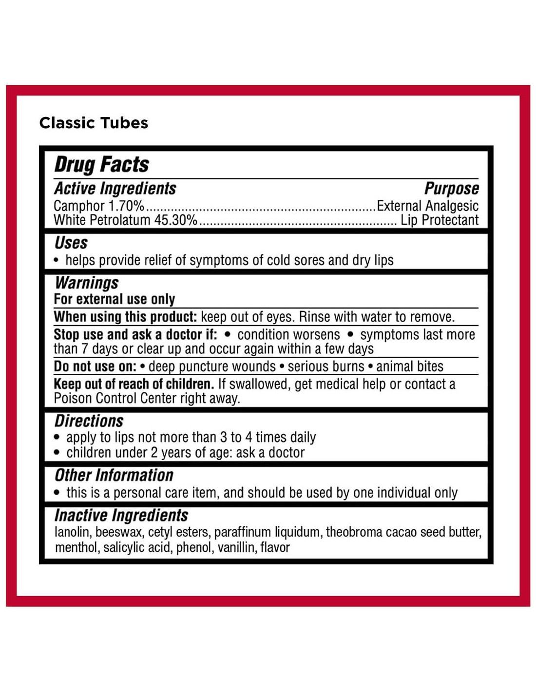 - Bálsamo labial hidratante Carmex Clásico para labios secos y agrietados que se desliza suavemente con una fórmula que contiene manteca de cacao, alcanfor y mentol para una sensación refrescante y calmante; 3 tubos de bálsamo labial Carmex
