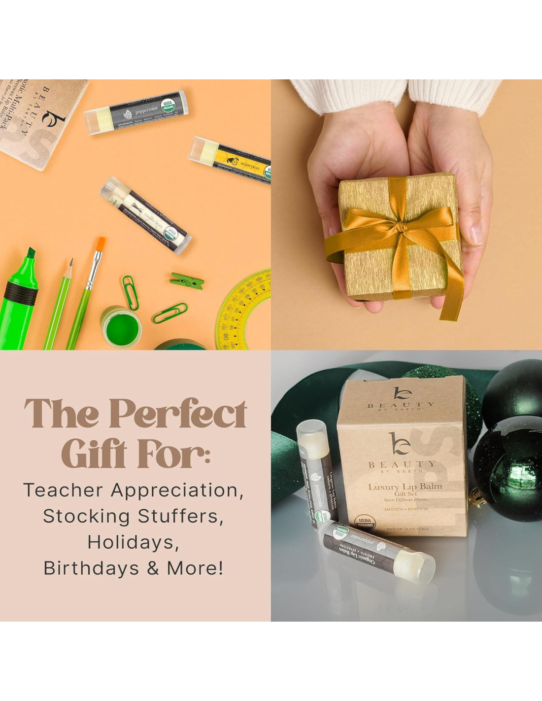 - SIN PETRÓLEO Y ORGÁNICO: Gran alternativa al chapstick para hombres y mujeres. Hecho en EE. UU. con ingredientes orgánicos de calidad. Es un juego de regalo de chapstick orgánico que es un hidratante para labios muy secos y los mantiene hidratados, una gran reparación para los labios.
