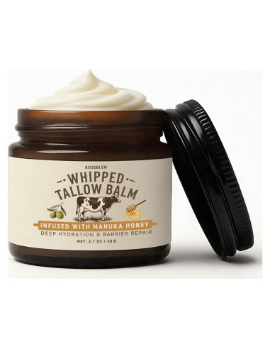- Salvador de Piel Versátil: Nuestra manteca de res alimentada con pasto nutre y repara profundamente la piel seca, agrietada o sensible, calmando áreas propensas a la irritación y sequedad. Libre de fragancias, colorantes o aditivos sintéticos, su ligera y aterciopelada textura se absorbe rápidamente, dejando la piel suave, lisa, calmada y revitalizada
