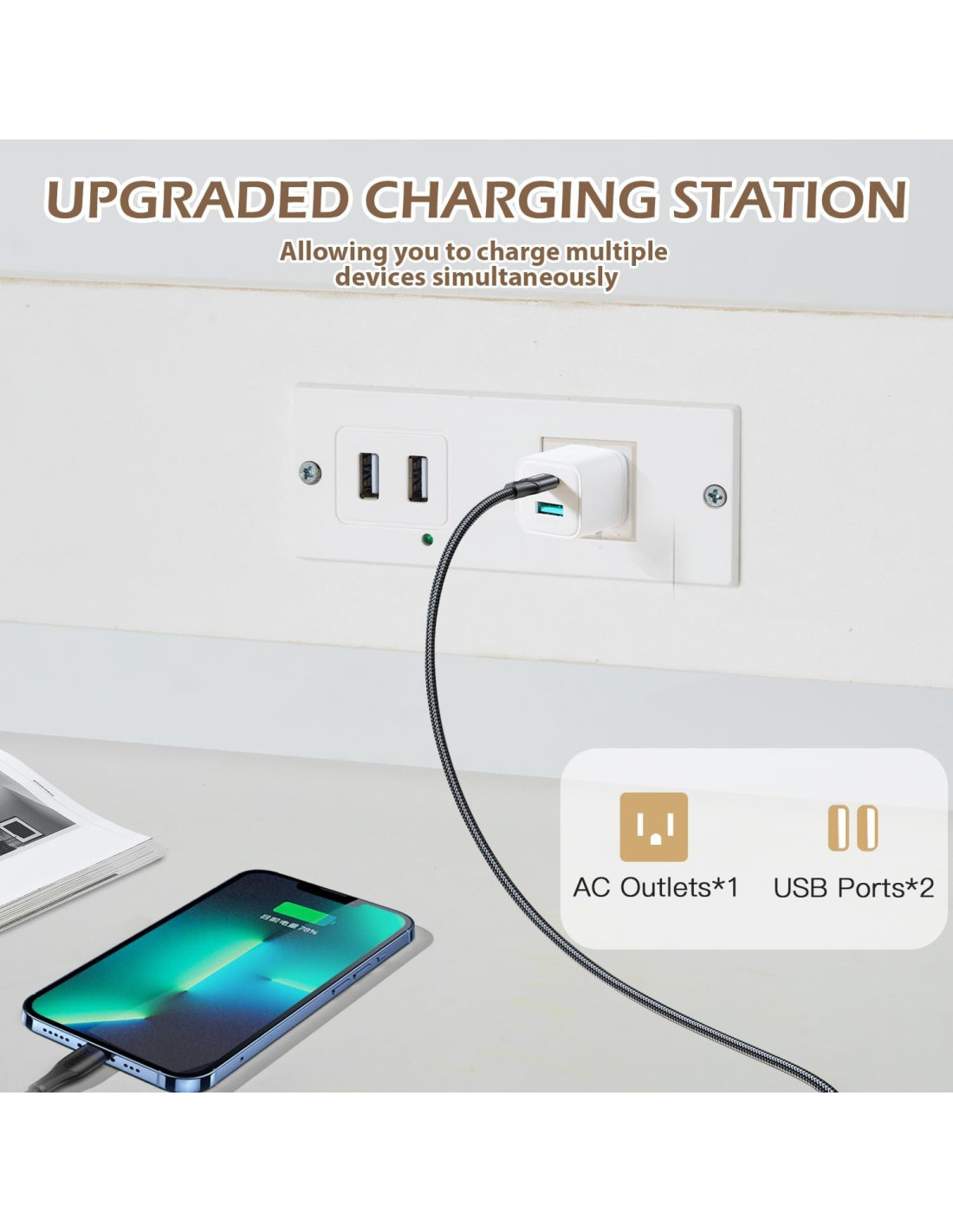 - ESTACIÓN DE CARGA: La estación de trabajo de la prensa térmica está equipada con una estación de carga, que incluye dos puertos USB y un enchufe de corriente estándar, que puede cargar múltiples dispositivos electrónicos simultáneamente, proporcionándote una solución de carga conveniente y asegurando que los dispositivos siempre funcionen de manera eficiente