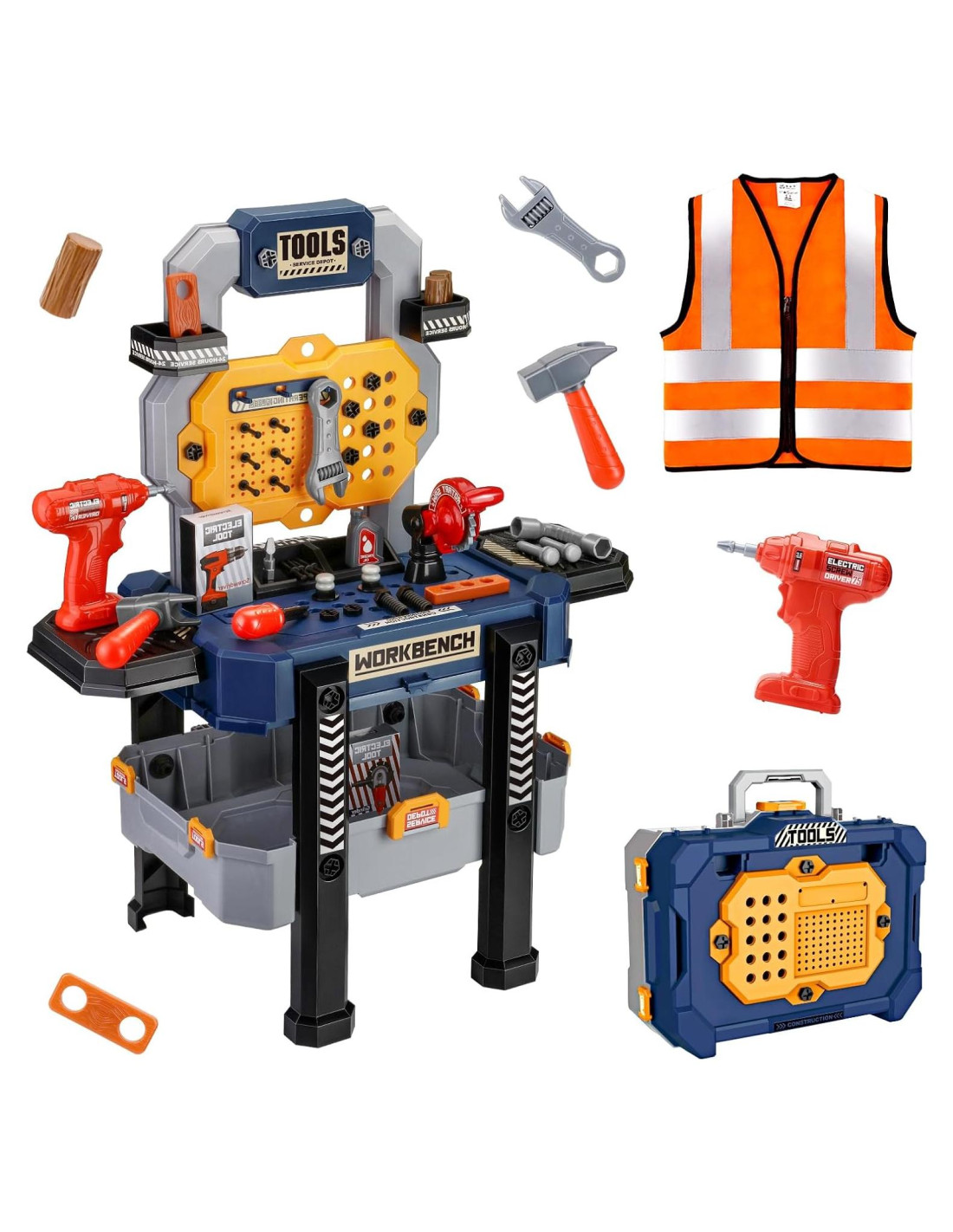 - Banco de trabajo para niños con ropa Ponte un traje de ingeniero y convierte a tu pequeño constructor en un ingeniero destacado. Deja que tu hijo juegue durante horas y estimule su imaginación, lo que ayuda a los niños a ser más creativos y desarrollar nuevas habilidades desde una edad temprana.