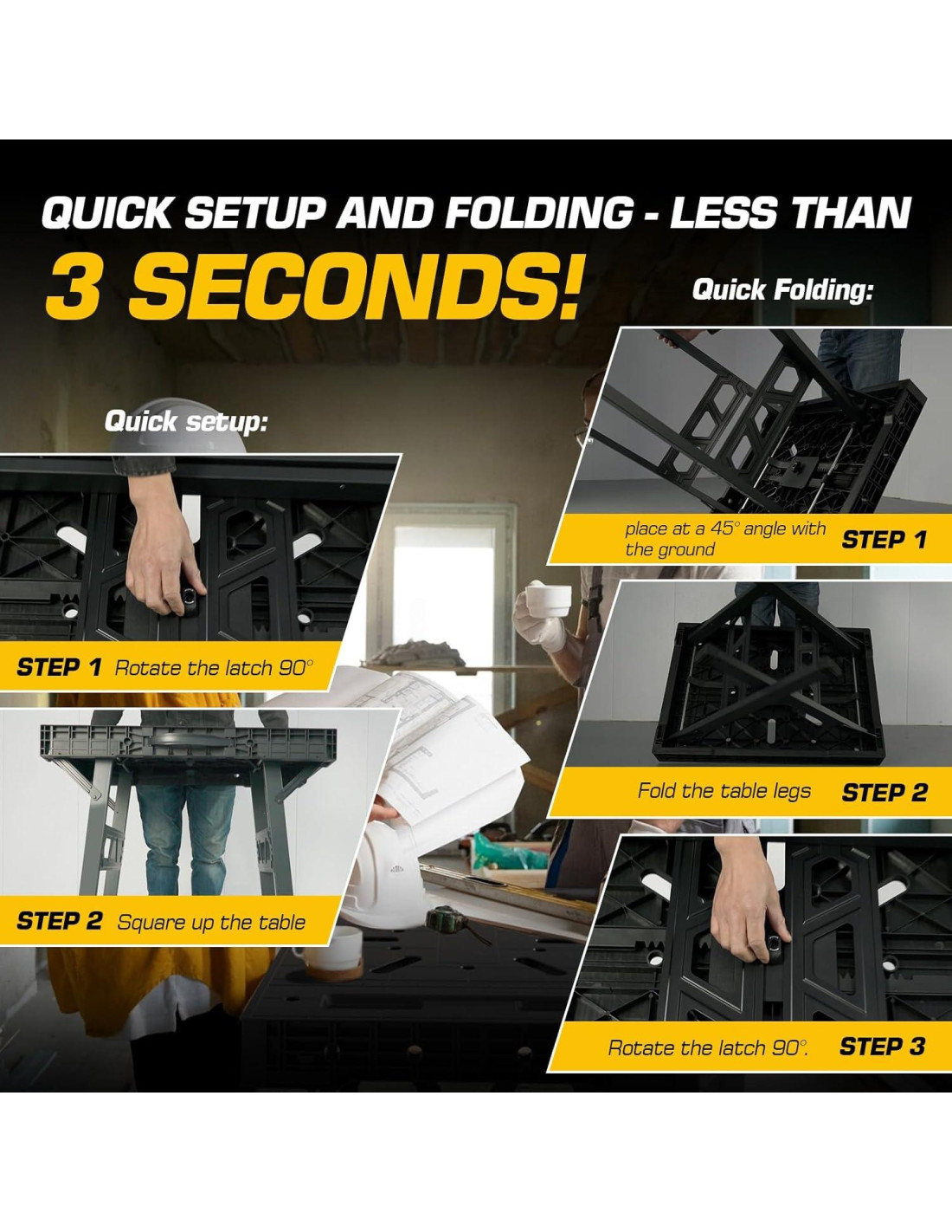 - Diseño compacto y portátil: Diseñada para tus necesidades en movimiento, la mesa de trabajo portátil pesa solo 10.57 kg para un transporte sin estrés. Ya sea para tu garaje, taller o proyectos al aire libre, se adapta fácilmente a cualquier espacio y te acompaña donde sea que tu trabajo te lleve.