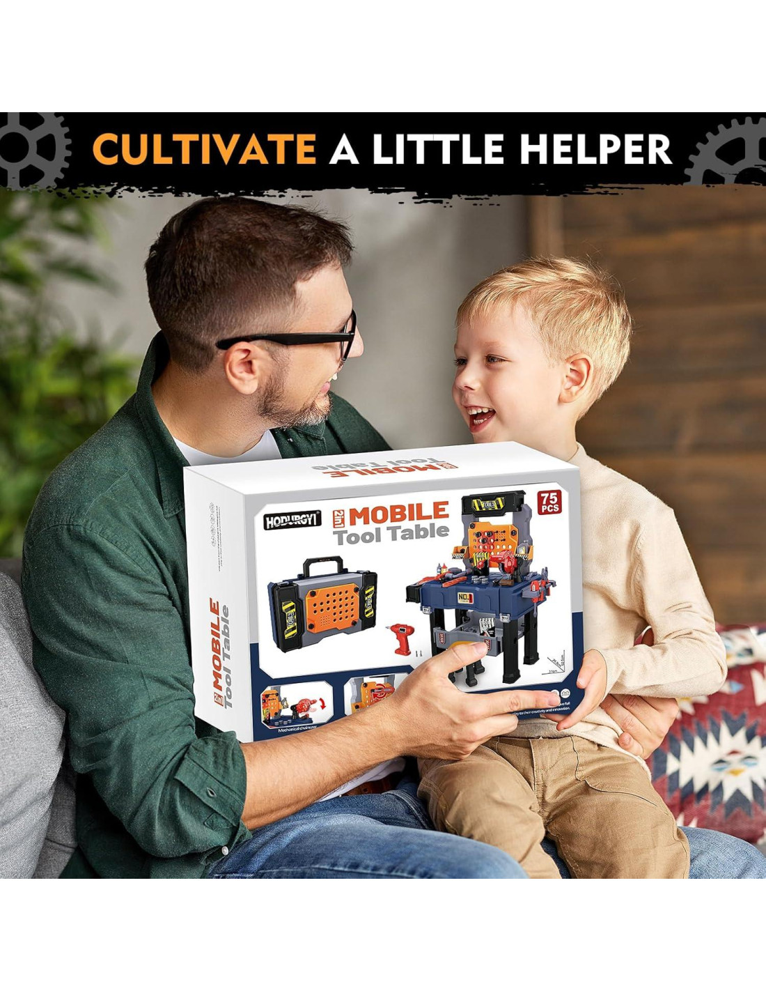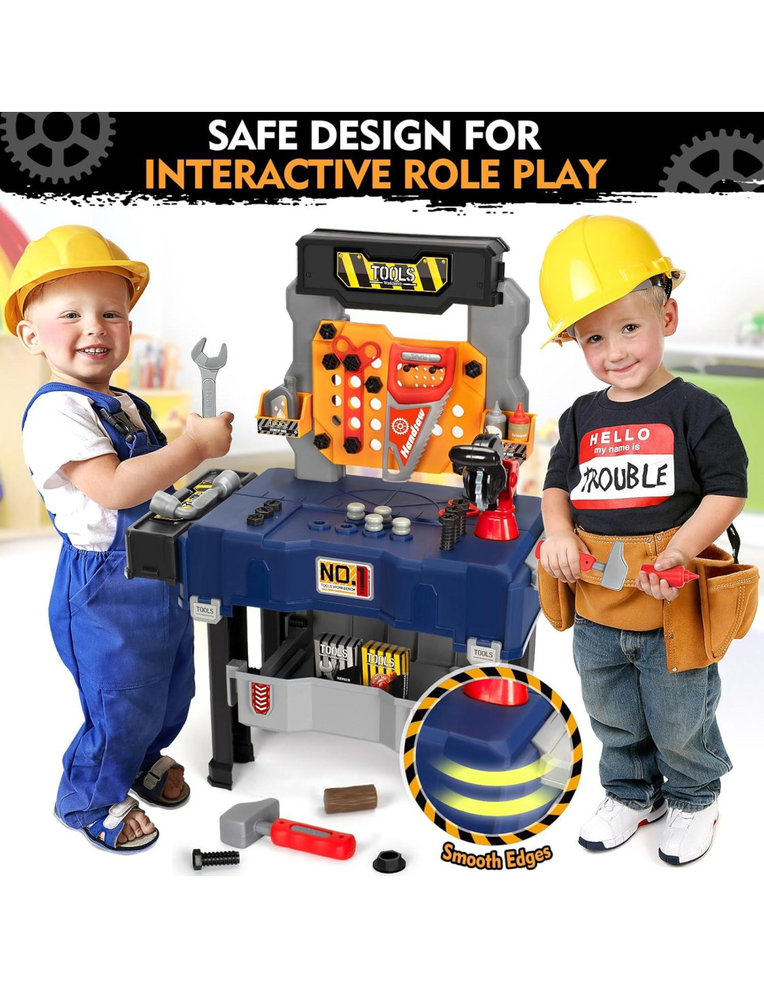 - Kit de herramientas educativas para niños: La parte superior de la mesa del banco de trabajo de juguete es excelente para pretender cortar, taladrar y serrar, dando un impulso a la imaginación de los niños. La gran capacidad de la caja de herramientas para niños facilita que los niños ordenen todas las herramientas después de jugar, desarrollando buenos hábitos de organización. Todas las herramientas de construcción de juguete contribuyen al desarrollo intelectual, la coordinación mano-ojo, el reconocimiento de colores y la resolución de problemas. Observa cómo tus hijos crecen mientras organizan, arreglan y organizan sus propios juguetes.