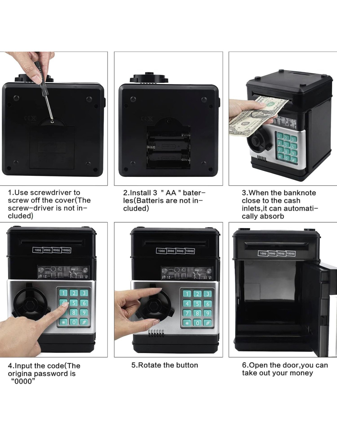 - [Mejor Regalo para Niños] Este banco de ahorro puede ayudar a los niños a ahorrar dinero de manera planificada. Puede ahorrar efectivo/monedas con código electrónico. Puede almacenar alrededor de 600 piezas de monedas o 100 piezas de dinero en papel. Lo más importante, puede enseñar a los niños a formar el hábito de ahorrar dinero desde una edad temprana. Este es un juguete que es muy bueno para el crecimiento físico y mental de los niños.