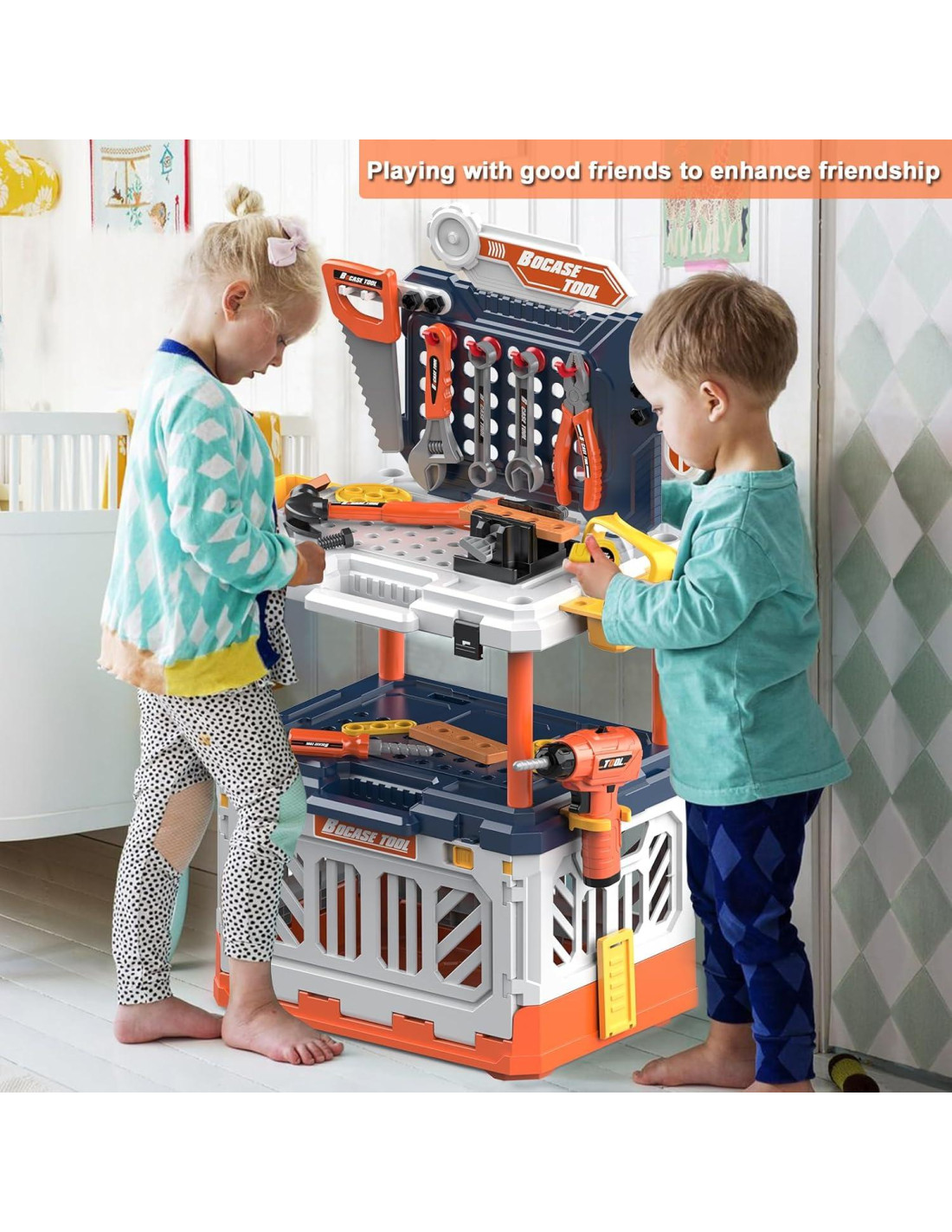 - [Diseño 4 EN 1] El set de herramientas para niños puede convertirse en una caja de herramientas, estuche portátil, banco de trabajo de pie y banco de herramientas corto según lo que desees. Fácil de ensamblar y desensamblar, por lo que puedes llevarlo fácilmente ya sea jugando en interiores o exteriores.