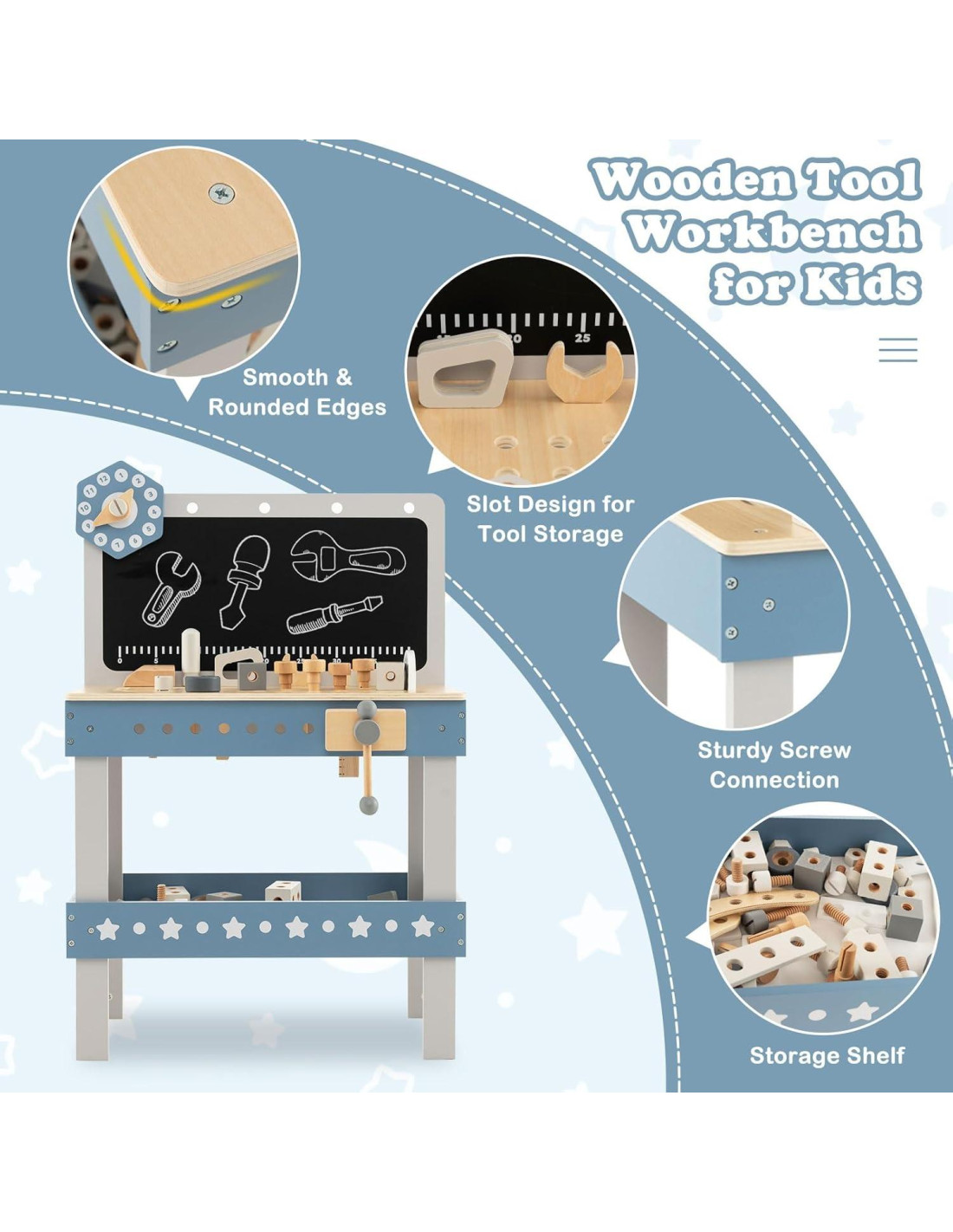 - [Estructura confiable y certificación] Con una mano de obra exquisita, este juguete de banco de trabajo para niños presenta bordes suaves y redondeados y una conexión de tornillo resistente. Certificado por ASTM y CPSIA, los padres pueden comprar con confianza.