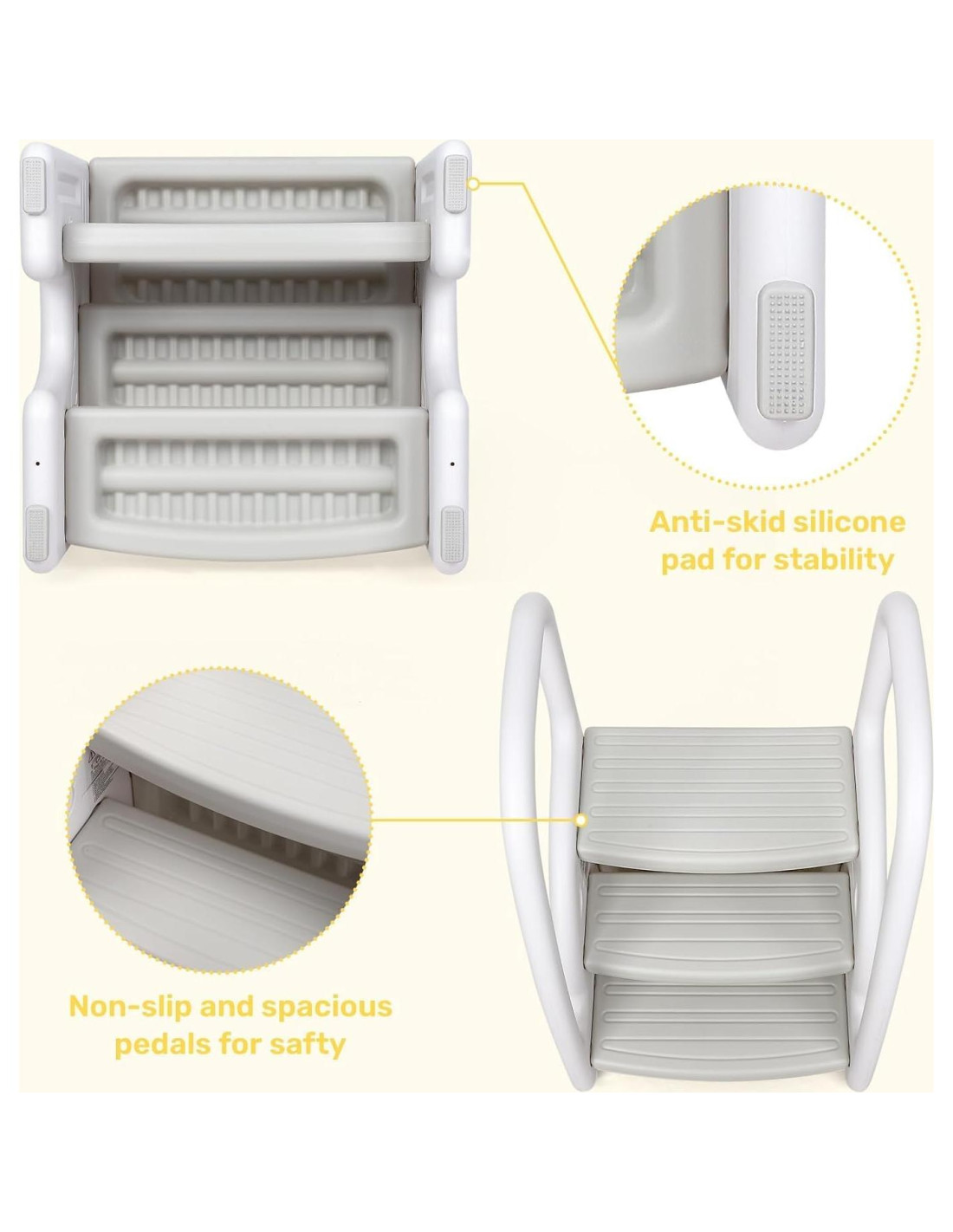 - Construcción resistente: Fabricado con materiales de alta calidad, nuestro taburete para niños cuenta con un robusto diseño de 3 pasos que garantiza una estabilidad y durabilidad excepcionales. Está diseñado para soportar el uso diario, proporcionando una plataforma confiable para la seguridad de tu hijo.