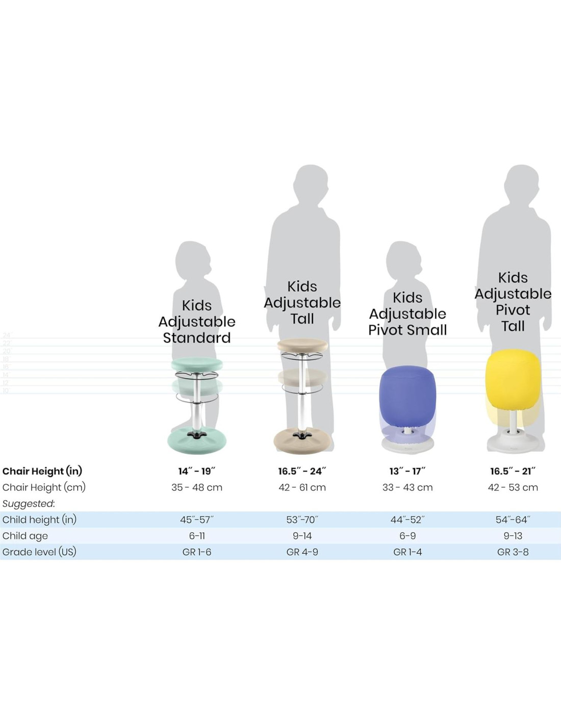 - ALTURA AJUSTABLE PARA NIÑOS EN CRECIMIENTO: Con un cordón fácil de usar, el Taburete Pivote KORE DESIGN se ajusta de 33 cm a 43 cm (Pequeño) o de 42 cm a 53 cm (Alto), ofreciendo flexibilidad para niños de diferentes edades y alturas. Sugerido para edades de 6-9 (Pequeño) y 9-13 (Alto), crece con tu hijo, haciéndolo perfecto para edades de 6-13, con una capacidad máxima de peso de 50 kg, lo que lo convierte en una gran silla de escritorio para niños en dormitorios o en el aula.