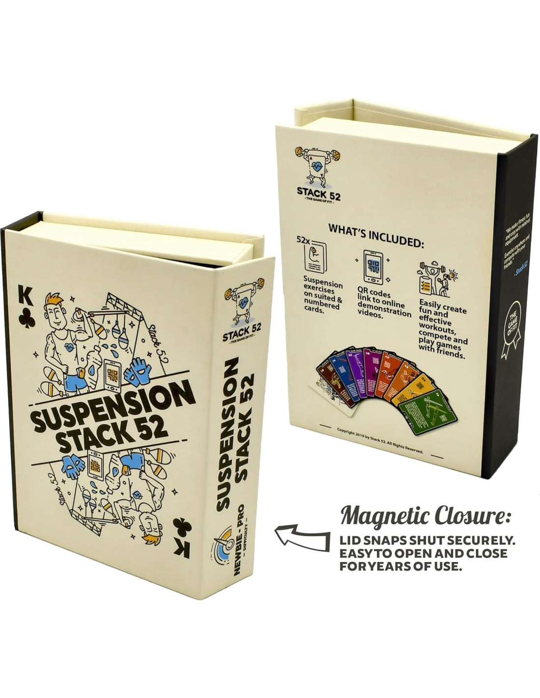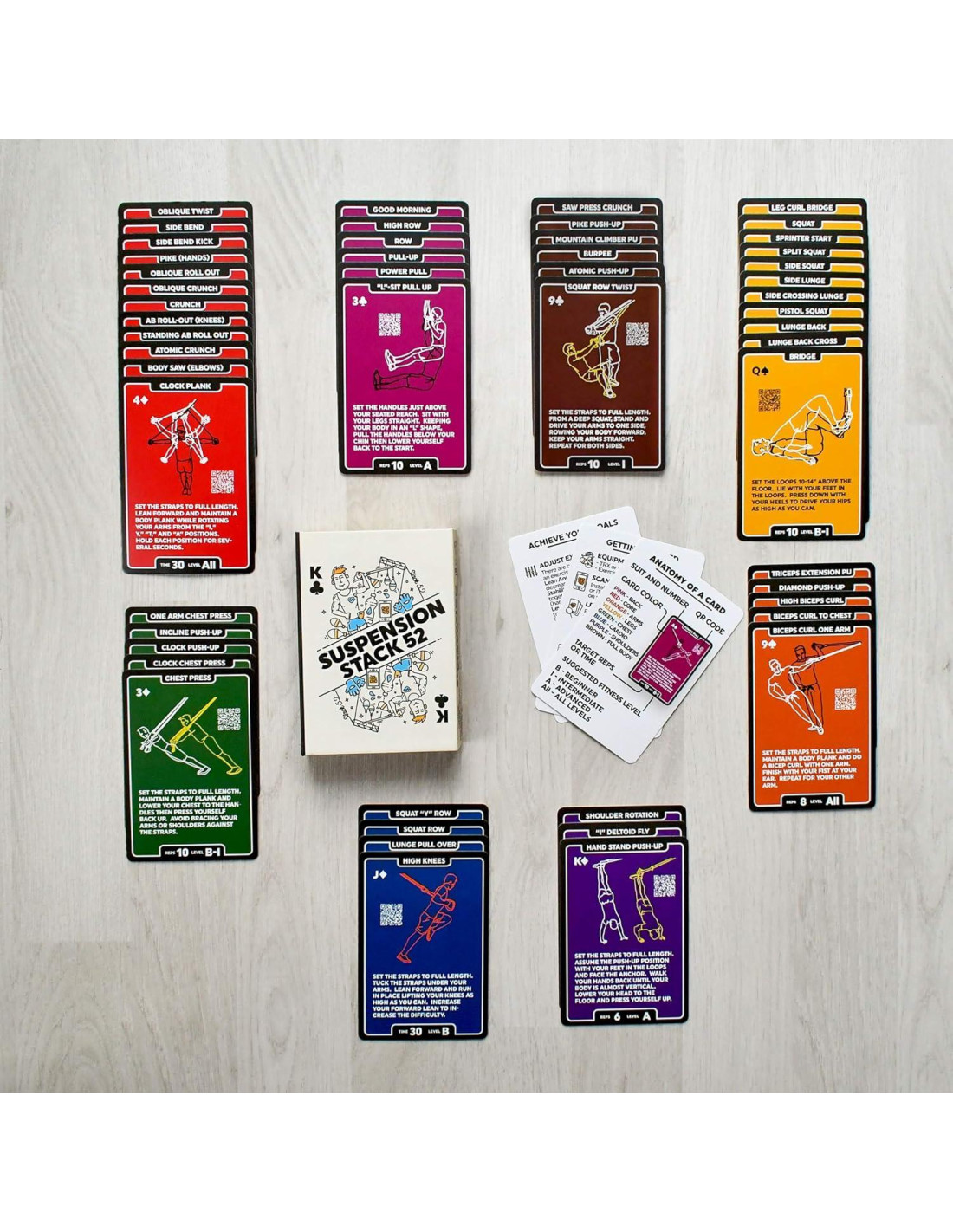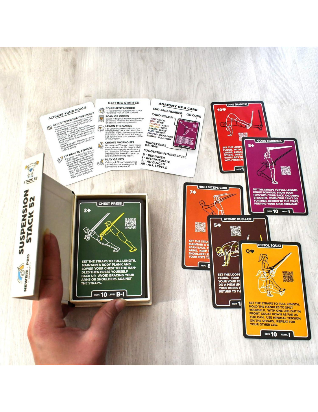 - CREA ENTRENAMIENTOS INCREÍBLES EN SEGUNDOS: Sin planificación ni preparación. Mezcla el mazo y reparte un entrenamiento o juega un juego de cartas de Suspensión Stack 52. Visita nuestro sitio web para ideas de juegos gratuitas o modifica tu juego de cartas favorito en un entrenamiento.