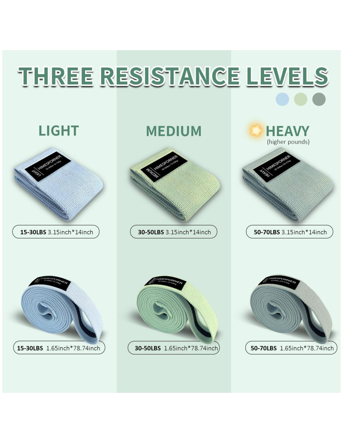 - 3 Niveles de Resistencia y Mismo Largo: 3 niveles de resistencia pueden satisfacer las necesidades de entrenamiento de principiantes y atletas experimentados. Elige una banda de resistencia que se adapte a tu fuerza para comenzar a ejercitarte y avanza de ligera a pesada. 3 bandas de fitness tienen el mismo largo, por lo que no es necesario ajustar el rango de movimiento del cuerpo.