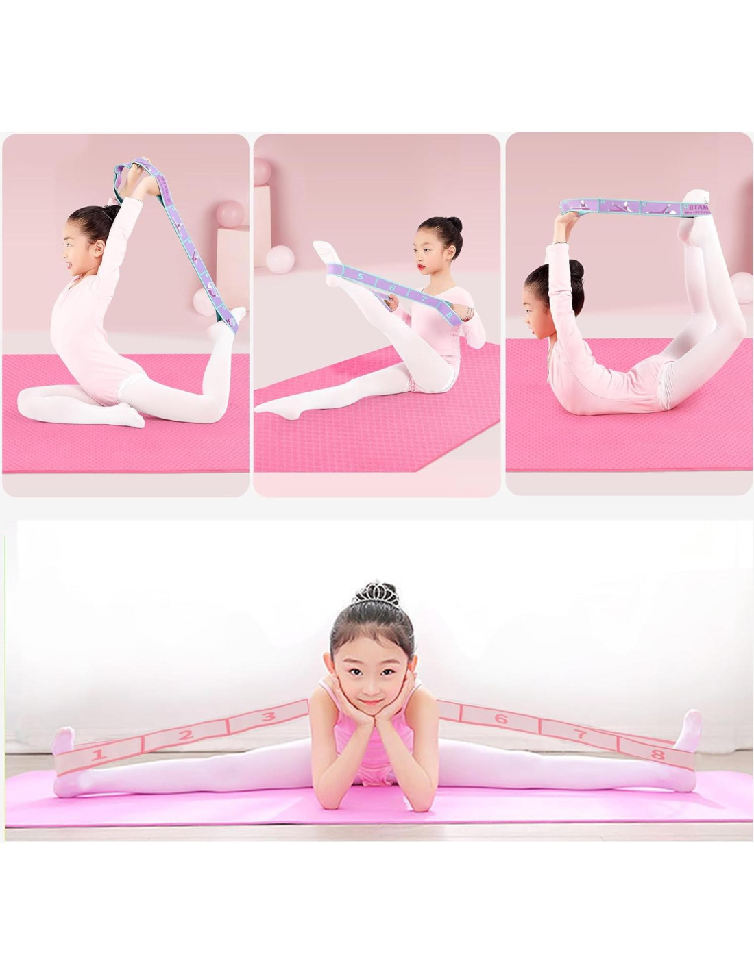 - BANDAS DE ESTIRAMIENTO PARA NIÑOS: Diseñadas para que los niños mejoren la movilidad y flexibilidad, ayudan a los niños a practicar habilidades básicas de danza o gimnasia: fijar tobillos, prevenir jorobas, enderezar la espalda, etc. Calentarse con la correa de estiramiento para danza ayuda a prevenir lesiones y coordinar el equilibrio.