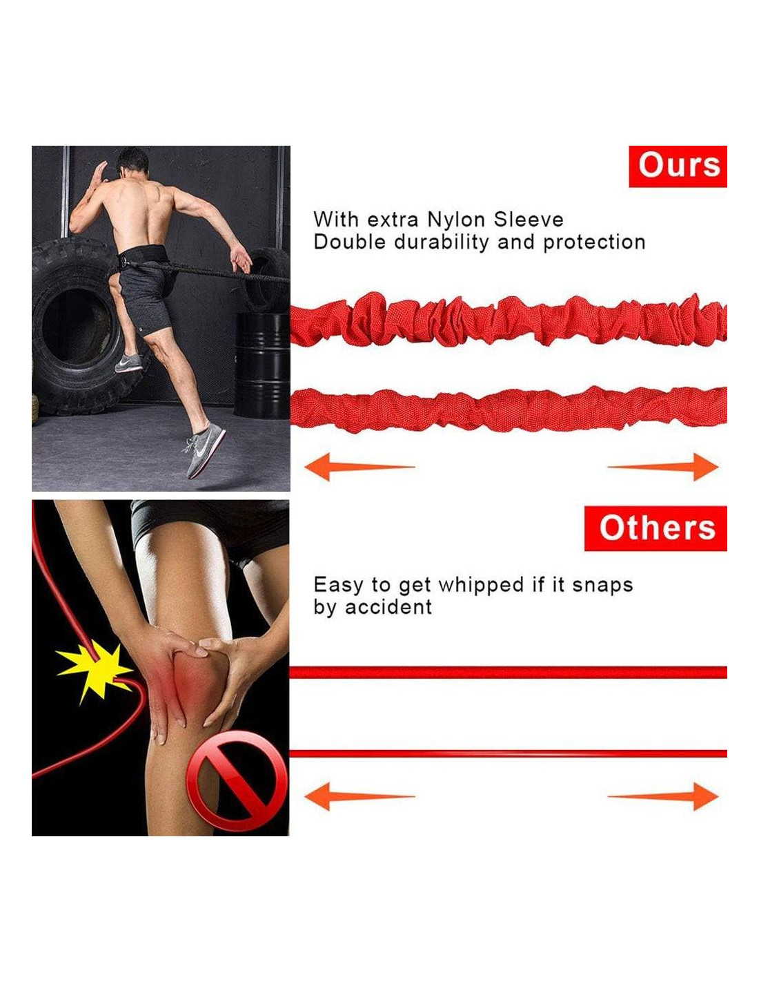 - CONJUNTO DE RESISTENCIA DE AGILIDAD: ofrece hasta 36.29 kg de fuerza de resistencia para aplicar resistencia a ejercicios de agilidad y fuerza. Su longitud original es de 5.06 m (16.6 ft), 2.99 m (9.8 ft), 2.01 m (6.6 ft) opcional. La banda elástica puede extenderse hasta 3 veces la longitud original.