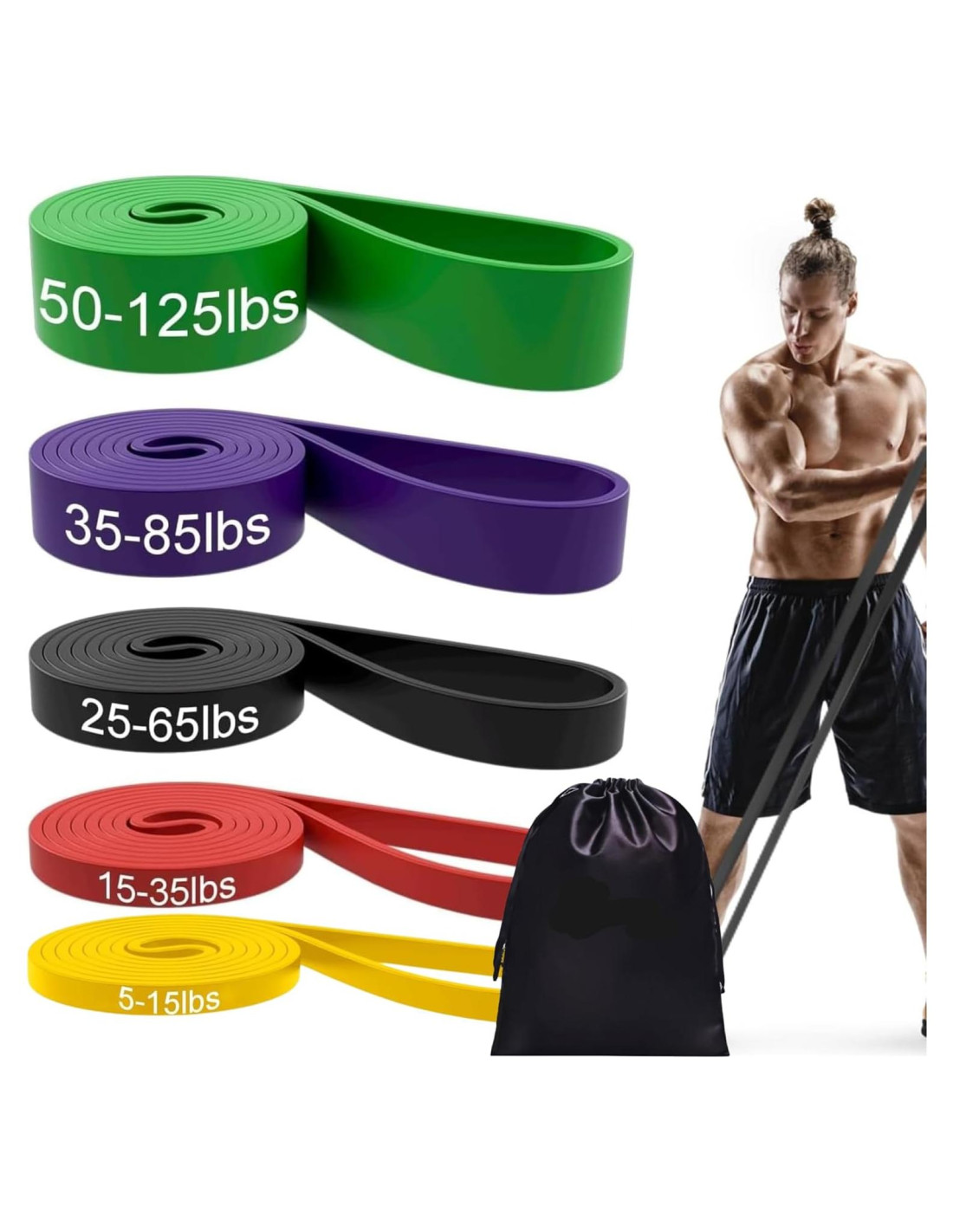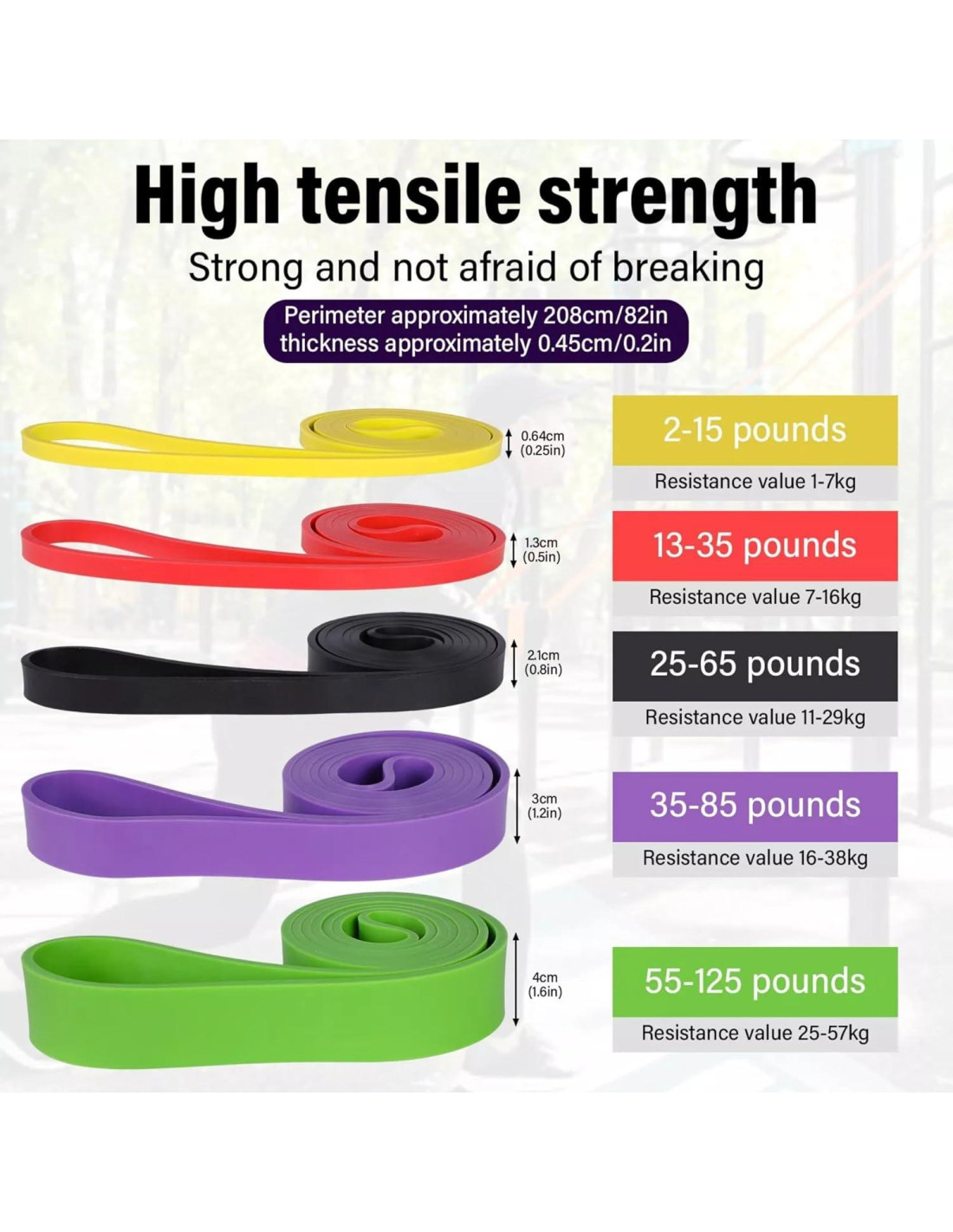 - 5 Niveles de Resistencia: Incluye Amarillo (2.27-6.8 kg), Negro (6.8-15.88 kg), Verde (11.34-29.48 kg), Azul (15.88-38.56 kg), Rojo (22.68-56.7 kg) para tonificación de cuerpo completo y entrenamiento de fuerza.