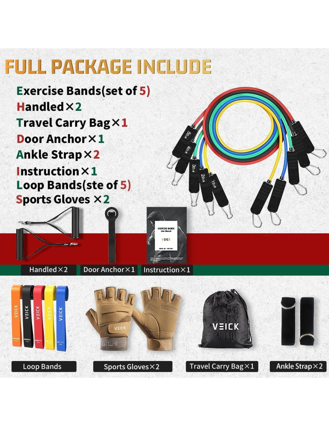 - Multifuncional para Entrenamiento - El conjunto de bandas de resistencia VEICK es excelente para cualquier entrenamiento como Yoga, Pilates y Fitness. O úsalas para ejercicio general, estiramiento, entrenamiento, programas de pesas.