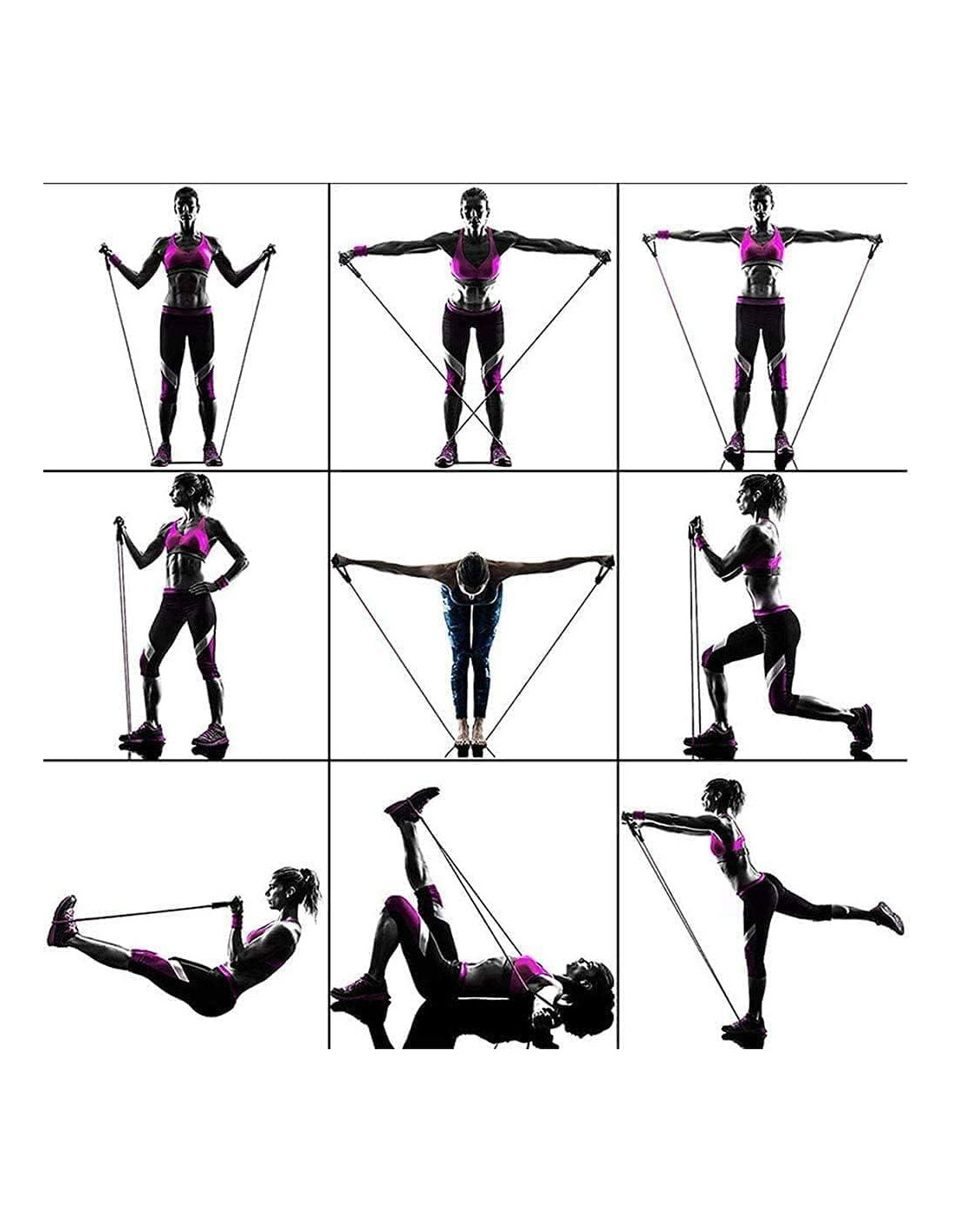- [Bandas de Resistencia] Diferente color para diferentes libras, banda Aqua (2.27 kg); banda Rosa (4.54 kg); banda Púrpura (6.80 kg); banda Gris (11.34 kg); banda Azul (15.88 kg); banda Roja (20.41 kg). Todas las bandas tienen la misma longitud (135.0 cm) y se pueden apilar en cualquier combinación según tu propósito de entrenamiento.