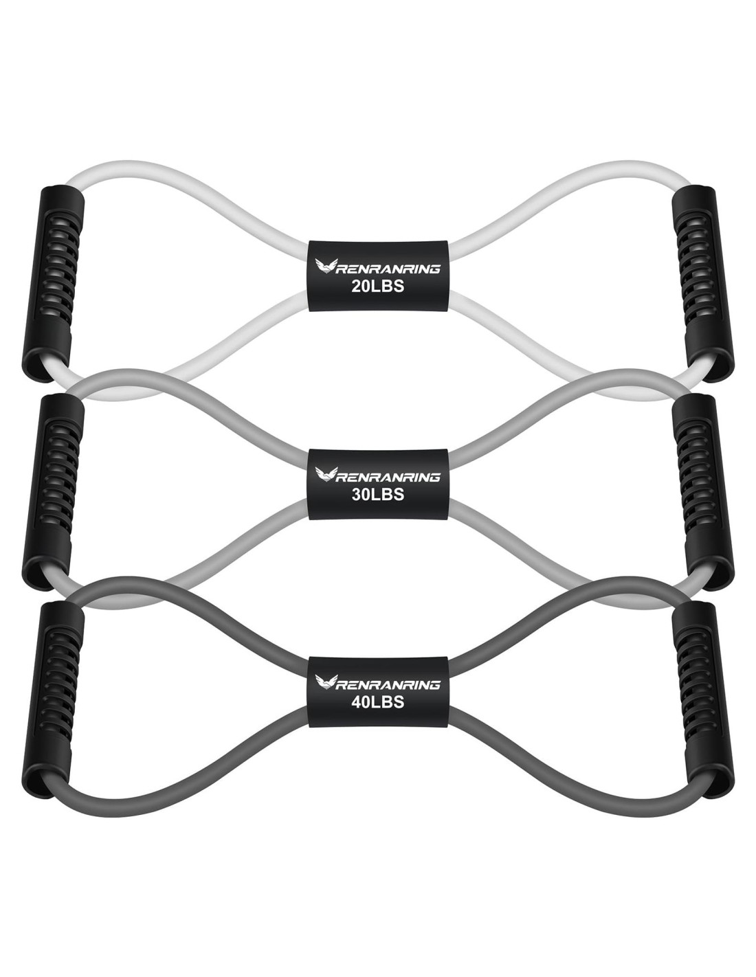 - JUEGO DE 3 BANDAS DE RESISTENCIA ICONO 8: Bandas para brazos disponibles en 3 niveles de resistencia: gris claro 9 kg (20 lbs), gris medio 13.6 kg (30 lbs), gris 18.1 kg (40 lbs). Mango de goma suave para mayor comodidad y agarre seguro