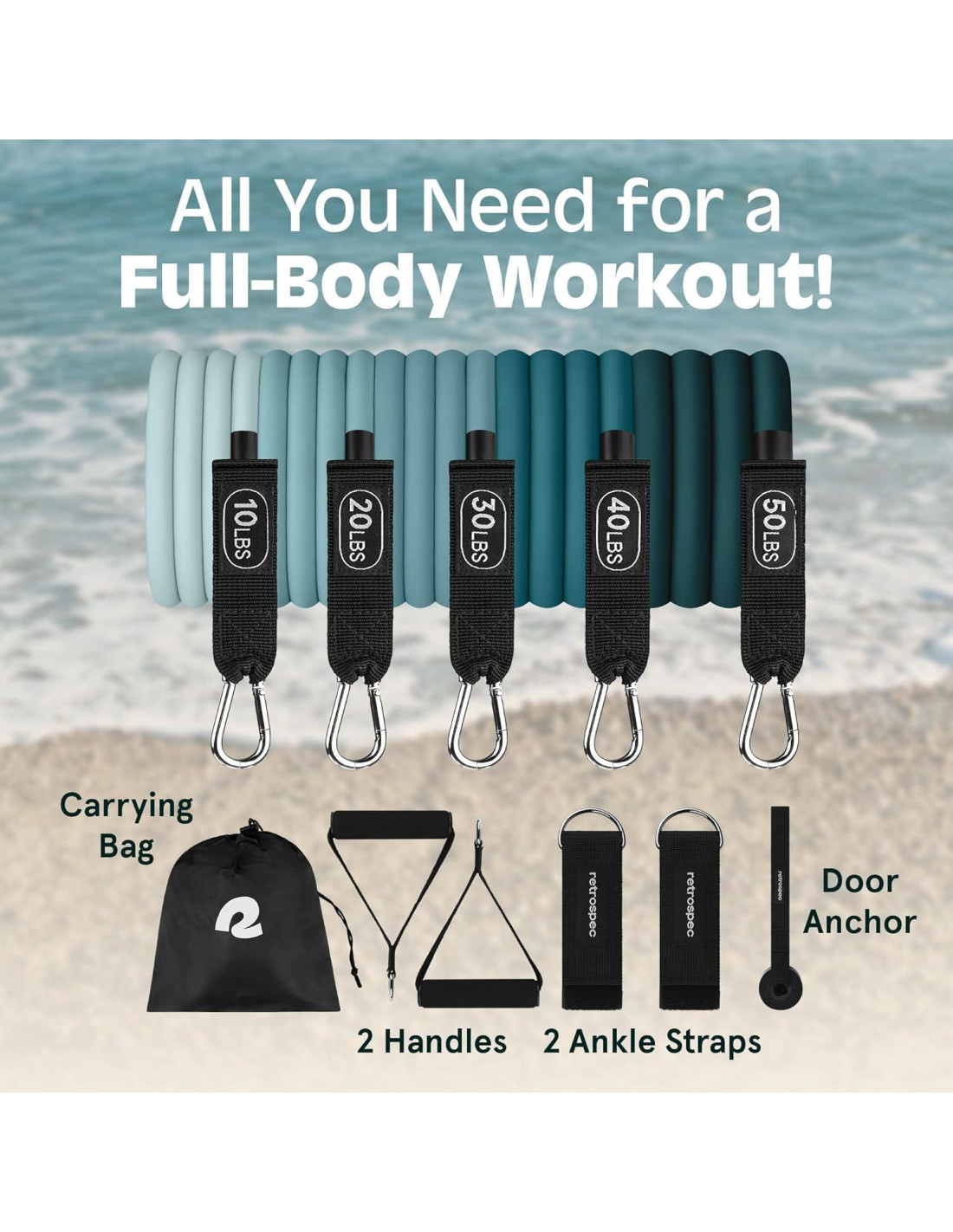 - INCLUYE: nuestras bandas de ejercicio elásticas vienen con un set de 5 bandas de resistencia, 2 mangos, 2 correas para tobillos, una bolsa de transporte y un ancla de puerta.