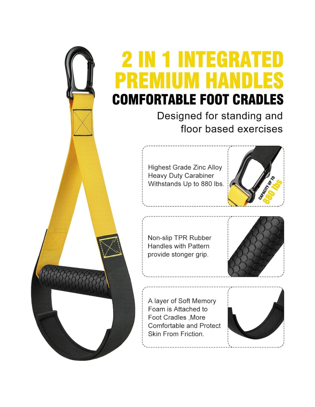 - Correas de Ejercicio "Ultra-resistentes y Duraderas": El dispositivo de Entrenamiento de Resistencia está hecho de fibra de poliéster de alta calidad y nylon de alta resistencia. La costura de la máquina es extremadamente precisa y fuerte, robusta. Este ancla de puerta está hecha de esponja de memoria, por lo que no hay necesidad de preocuparse por su deformación. El mango antideslizante está hecho de TPR de alta calidad. Después de pruebas de seguridad, puede soportar hasta 500 libras (226.8 kg).