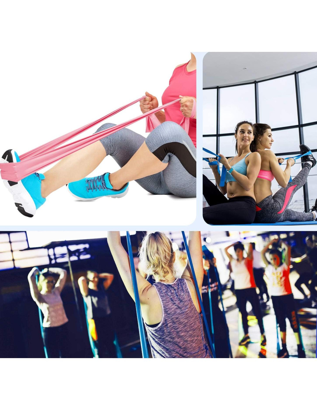 Juego de 3 con diferentes fuerzas! LIGERA EXTRA LARGA (Azul) 1800 * 150 * 0.35mm: Adecuada para calentar y para ejercicios ligeros. MEDIA (Púrpura) 1800 * 150 * 0.45mm: Adecuada para entrenamiento de fuerza ligero, calentamiento y estiramiento. FUERTE (Rosa) 1800 * 150 * 0.55mm: Adecuada para entrenamiento de fuerza. El entrenamiento con bandas de resistencia puede mejorar el equilibrio, la movilidad, la función de la marcha y la eficacia en la prevención de caídas, teniendo un impacto positivo general en las personas mayores. Excelente para la recuperación de lesiones. Las bandas de resistencia han sido un elemento básico para aquellos en rehabilitación de una lesión relacionada con deportes o músculos. Esto se debe a que las bandas de resistencia no aplican presión de la manera en que lo hacen los pesos, manteniendo sus articulaciones y todo lo demás a salvo. Son convenientes. Las bandas de resistencia son muy pequeñas y compactas, lo que las hace fáciles de almacenar. Literalmente puedes colocar un juego completo de bandas de resistencia en una pequeña estantería. No son como las mancuernas o una máquina de gimnasio en casa que requieren mucho espacio para operar y almacenar. Además de ser convenientes, las bandas de goma son ligeras y portátiles, lo que significa que puedes llevarlas contigo a donde vayas y hacer ejercicio desde cualquier lugar, ya sea viajando o en casa. Un entrenamiento de cuerpo completo. Algo que definitivamente es una gran ventaja de usar bandas de resistencia para tu rutina diaria de ejercicios es que puedes obtener un entrenamiento de cuerpo completo de arriba a abajo con una simple pieza de equipo.