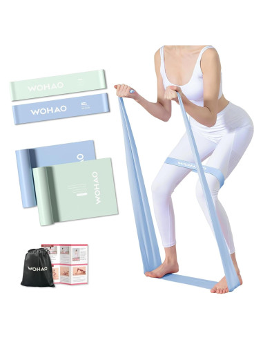 Juego de Bandas de Resistencia WOHAO, Tres Niveles de Resistencia, Bandas de Estiramiento para Hacer Ejercicio Mujeres o Hombres, Entrenamiento de Fuerza, Fitness en Casa, Tonificación, Estiramiento, Yoga, Pilates