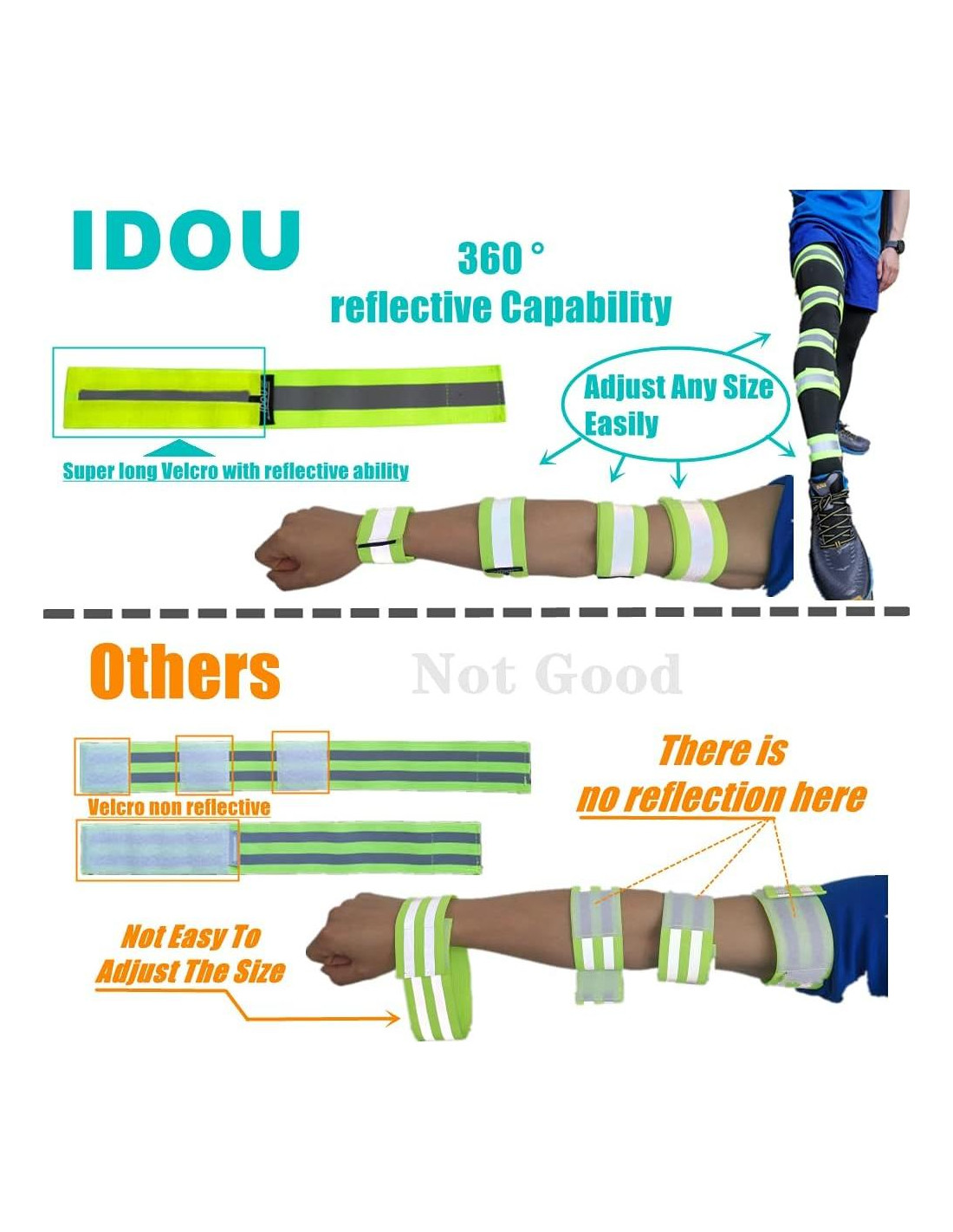 - BANDAS IDOU adecuadas para todas las personas, como hombres, mujeres, niños, atletas, trabajadores, corredores, ciclistas, motociclistas; y cualquier parte del cuerpo: brazos, muñecas, tobillos, piernas y cintura, etc., también cualquier prenda: camiseta, tops, jersey, chaqueta, mochila, correas para piernas, puños de pantalón, sujetadores, clips para pantalones de bicicleta. No se requieren baterías