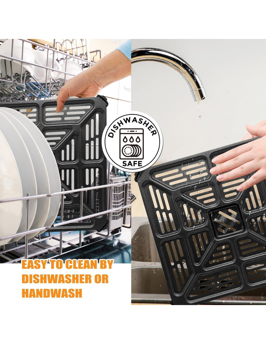 - [Apto para lavavajillas] Fácil de limpiar en el lavavajillas, las piezas de reemplazo para horno de aire son firmes, no fáciles de deformar, antiadherentes y duraderas. Incluso si el escudo contra salpicaduras se adhiere a algunos alimentos, después de un rápido remojo, se quita fácilmente, lo que hace que la limpieza sea muy sencilla. Por favor, no frotes con un paño abrasivo rugoso o bolas de metal.