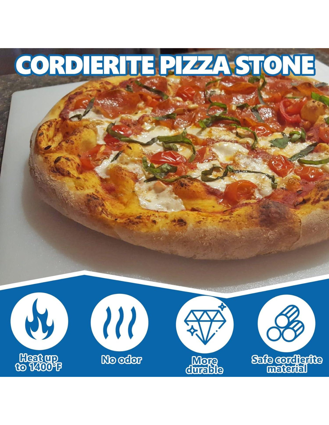 - CALIDAD PREMIUM: Fabricada con material de cordierita duradero, midiendo 13.2" x 13.2" x 0.4" (33.5 cm x 33.5 cm x 1 cm), esta piedra para pizza garantiza un rendimiento consistente y un uso duradero. Fabricada con un grosor de 0.4" (1 cm), mantiene su durabilidad sin peso innecesario.