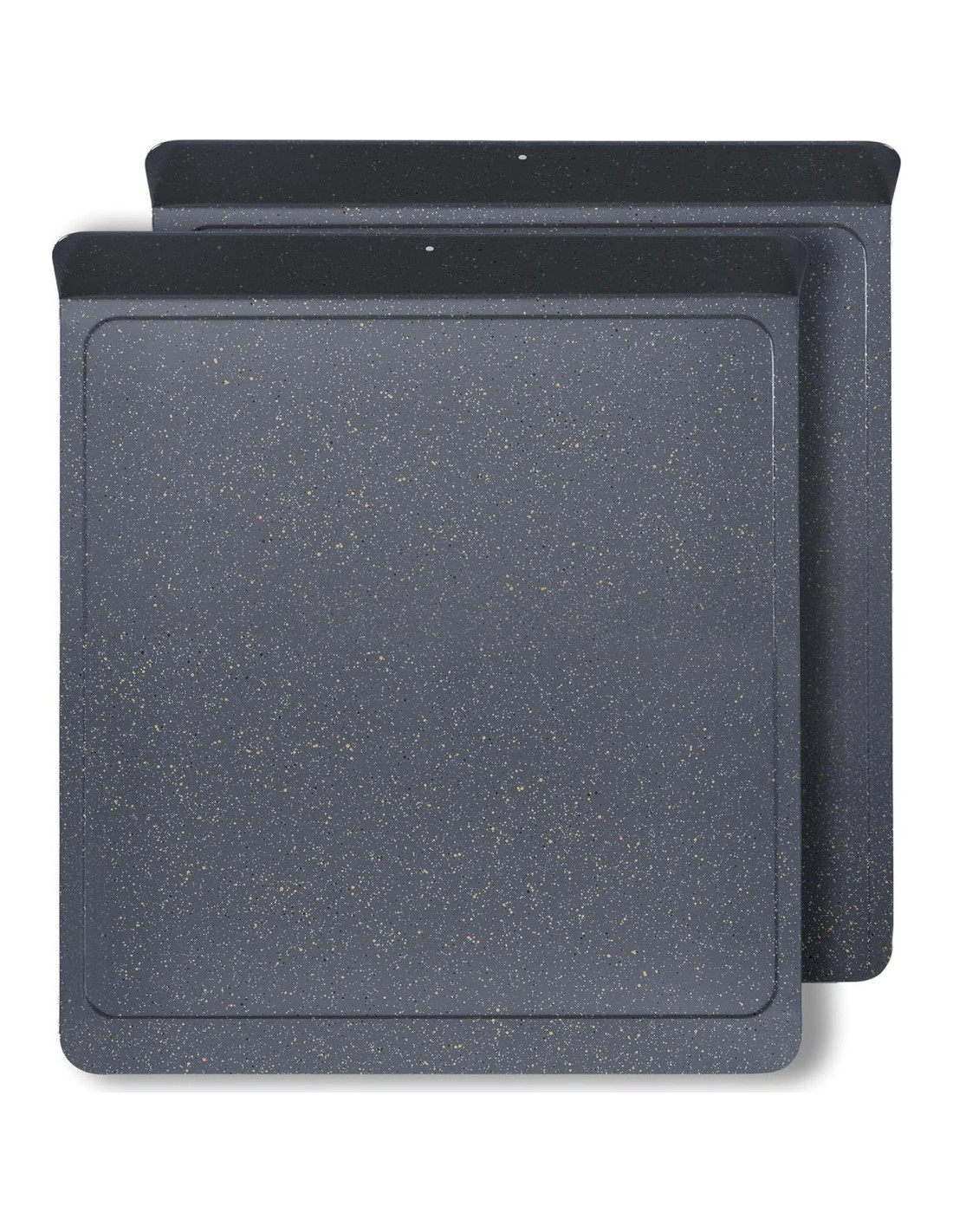- Esta bandeja presenta nuestra exclusiva superficie de horneado recubierta de cerámica de granito de color plateado de fácil liberación. Sus ricos puntos de acento crema y marrón hacen que esta bandeja para hornear sea tanto de alta moda como de alta funcionalidad.