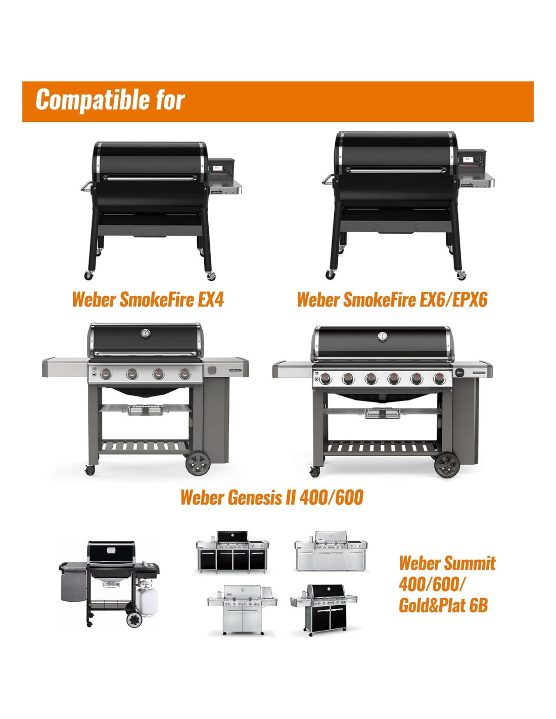 - Paquete de 35 bandejas de goteo desechables compatibles con parrillas de pellets de madera Weber SmokeFire EX4/EX6/EPX6, parrillas de gas de la serie Summit 400/600, parrillas de gas de 6 quemadores Summit Gold, parrillas de gas de 6 quemadores Summit Platinum y parrillas de gas Genesis II 400 y 600, también adecuadas para planchas Weber de 36" (91.44 cm) y 28" (71.12 cm)