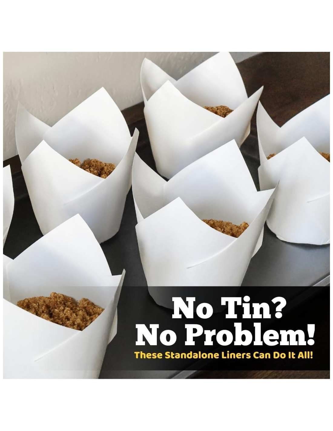 Tazas de Hornear en Forma de Tulipán MÁS GRANDES QUE JUMBO - Las tazas extragrandes te permiten hornear deliciosos postres para tus eventos familiares o negocio de repostería. Los forros jumbo para muffins miden 5.08 cm de profundidad, 6.99 cm de ancho en la base y 9.53 cm de ancho en la parte superior. INCREÍBLEMENTE ANTIDESLIZANTES - Con este forro para cupcakes antideslizante, puedes disfrutar de tu cupcake entero sin desorden durante el horneado y el deleite. Esta taza de hornear resistente a desgarros está hecha con materiales de primera calidad, asegurando una liberación limpia, sin dejar residuos. SEGURO PARA AMIGOS Y FAMILIA - Los forros de muffins de papel pergamino sin blanquear son seguros para horno, microondas y refrigerador, sin colorantes ni químicos añadidos. Estos forros de cupcakes marrones son resistentes al calor y sin olor, libres de cloro y no liberan ningún olor mientras se cocinan. FORROS PARA MUFFINS EXTRA GRUESOS Y DURADEROS - Elaborados con papel pergamino extra grueso, estas tazas para muffins se sostienen solas sin necesidad de un molde para muffins. ¡No es necesario duplicar! No se doblarán, rasgarán ni se pegarán a otros forros para cupcakes. USOS ILIMITADOS - Un paquete de 200 tazas para hornear asegura que disfrutes de grandes y hermosos cupcakes en bodas, cumpleaños, baby showers, aniversarios, fiestas de vacaciones y graduaciones. Puedes hornear cupcakes, muffins tamaño Costco, galletas, tartas, galletas, mini quiches, omelets, pastel de carne y comidas pre-porcionadas congeladas con este forro de hoja para hornear a prueba de grasa. Sostén bocadillos, frutas y dulces. Previene goteos de paletas, organiza tu espacio de trabajo o incluso úsalos como moldes para bombas de baño.