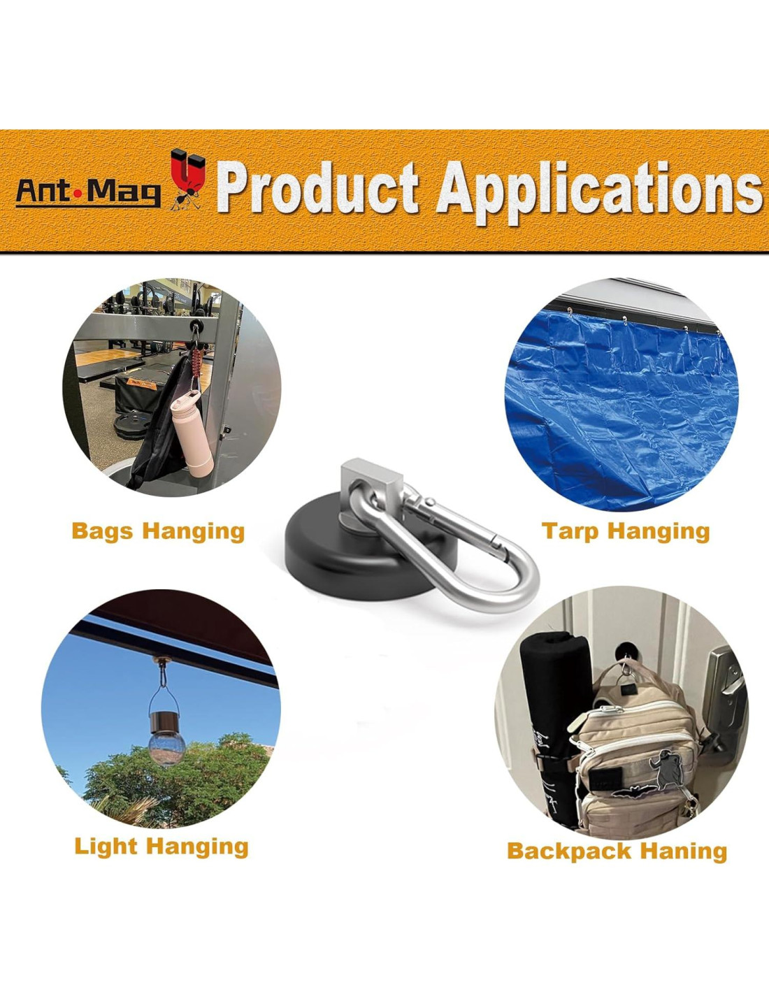 Ant Mag - Ganchos Magnéticos con Mosquetón 80LBS de Alta Resistencia con Imán de Neodimio y Mosquetón Giratorio para Colgar en Interiores/Exteriores