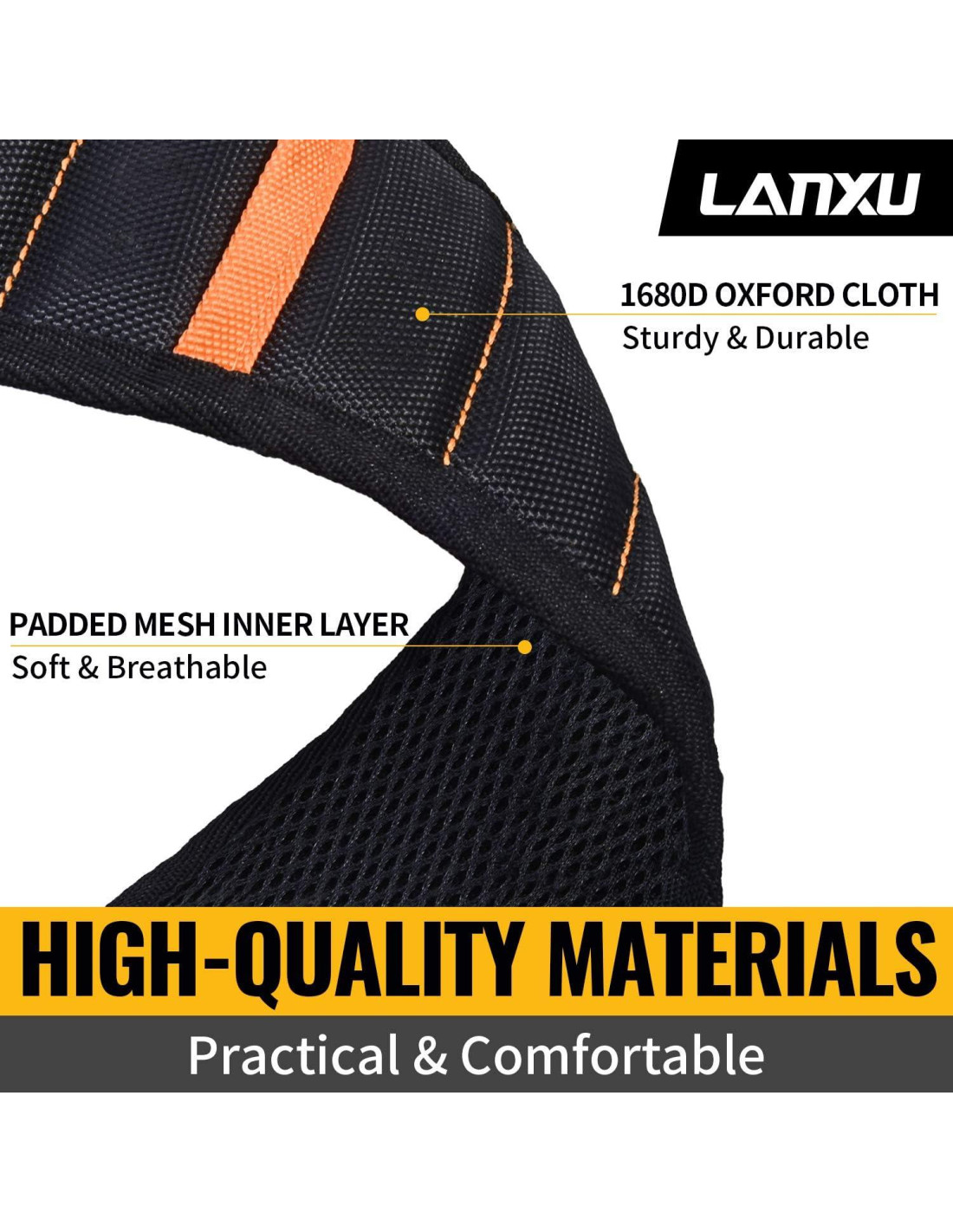 - DURADERO Y TRANSPIRABLE - La banda magnética LANXU está cosida con tela de doble capa. La parte frontal está hecha de poliéster balístico 1680D y la parte trasera utiliza una malla acolchada suave para asegurar una buena transpirabilidad. Ofrece un excelente rendimiento tanto en durabilidad como en comodidad.