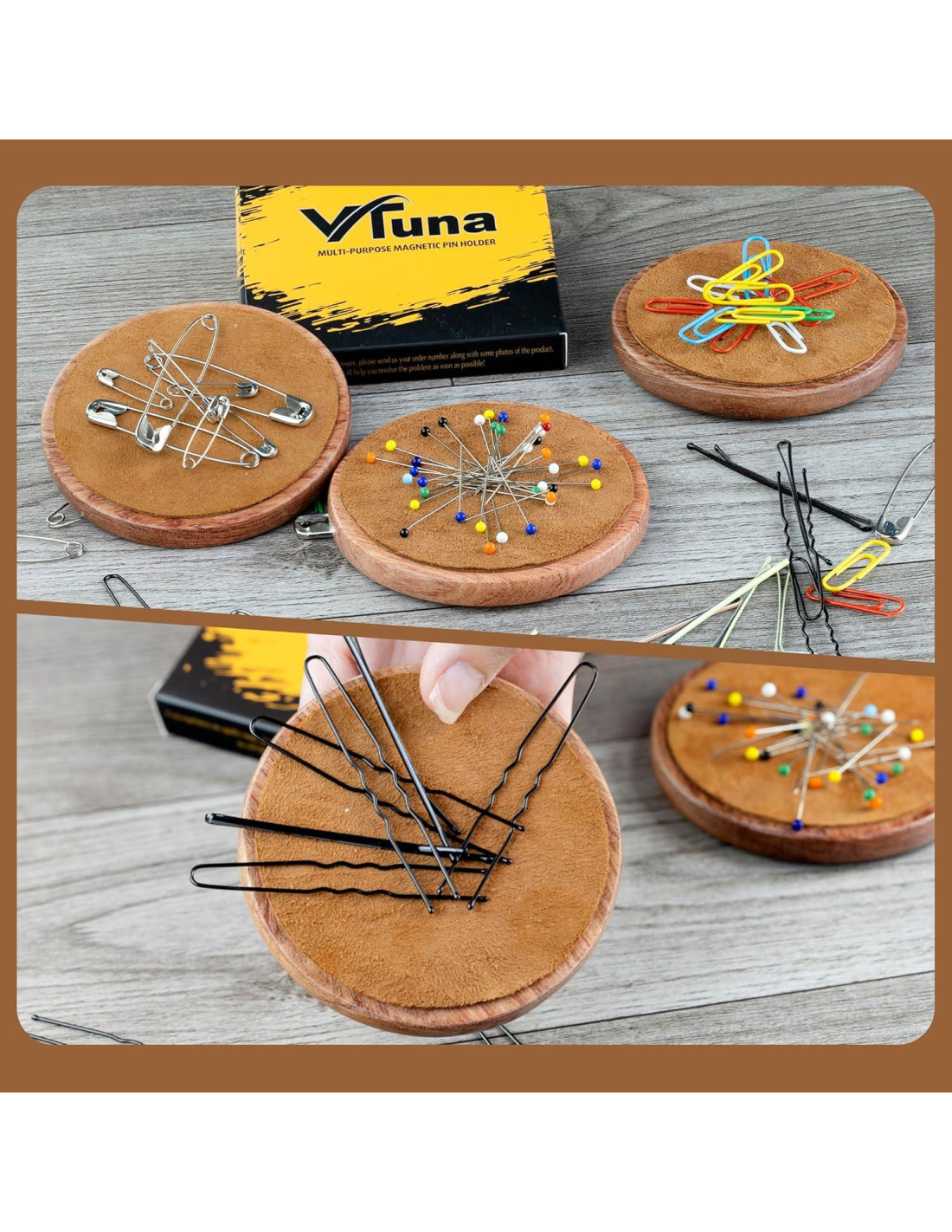 - Fuerte poder magnético - Agarra instantáneamente pinzas y clips: Di adiós a las horquillas, agujas de coser y clips de papel esparcidos. El soporte magnético VTUNA cuenta con un potente imán incorporado que recoge y asegura tus herramientas metálicas, manteniendo tu espacio de trabajo ordenado y eficiente.