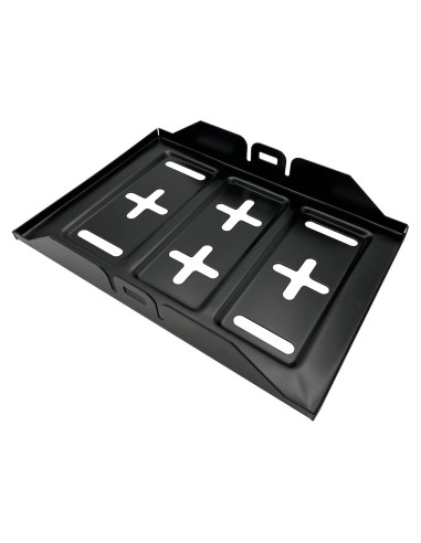 Las bandejas de batería ARONOVA son una gran opción para aquellos que planean agregar una segunda batería a la tracción en las cuatro ruedas, o incluso reubicar o proporcionar un mejor soporte y base para una batería existente. Estas bandejas tienen un acabado suave con recubrimiento en polvo para garantizar protección contra la corrosión y el clima. Cada bandeja se puede fijar a una superficie plana y también proporciona la capacidad para que se puedan adjuntar abrazaderas de sujeción a los lados para asegurar adecuadamente la batería. Instrucciones de instalación 1. Desconectar los cables de la batería. 2. Retirar todo el hardware de sujeción de la batería y quitar la batería. 3. Retirar la bandeja vieja aflojando todo el hardware. Si los soportes de montaje están soldados a la bandeja vieja, estos pueden tener que ser desenganchados con cuidado y reutilizados. 4. Colocar la nueva bandeja en su lugar y alinear los agujeros de montaje. Si la alineación es imposible, perforar cuidadosamente nuevos agujeros en la bandeja. 5. Asegurar en su lugar con el hardware viejo o, si está muy dañado, usar hardware nuevo. 6. Reemplazar la batería. Asegurar en su lugar y reconectar los cables.